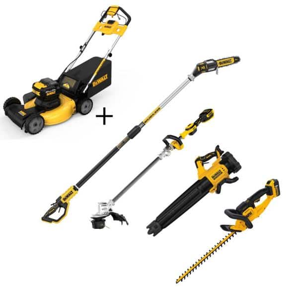 The 2X 20-Volt MAX 3-in-1 Cordless Self Propelled Lawn Mower is powered by two 20-Volt MAX 10 Ah batteries to deliver 40-Volt of power and 400-Watt-hours. The adjustable self propelled function allows you to choose your pace of cut. The unit features a 21.5 in. steel deck and a high-output brushless direct drive motor, delivering powerful performance for up to 50-minutes of runtime. Equipped with Auto Sensing technology the unit increases torque in high overgrowth. With 6 cutting heights that range from 1.5 in. to 4.0 in., you can handle any size lawn. The lawn mower’s 3-in-1 capability allows for mulching, bagging or side clipping discharge. It is perfect for properties up to 1/2 acre. This 20-Volt MAX 14 in. String Trimmer DCST922B features an innovative folding hinge mechanism that reduces the length by 41% for accessible storage and quick portability. The 20-Volt MAX Brushless Handheld Blower DCBL722B provides the ability to clear debris with an air volume of up to 450 cub. ft./minute and up to 125 miles/hour with the concentrator nozzle.