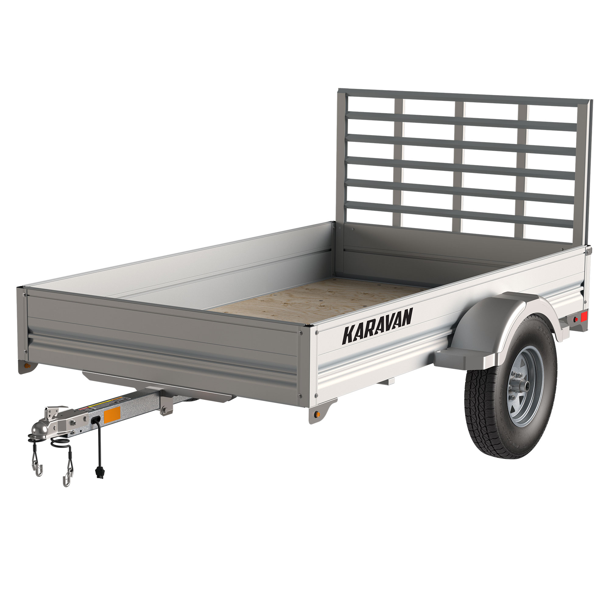 Our versatile, attractive 4.5 x 8 ft. Aluminum Utility Trailer is designed to be pulled behind a car or SUV and is perfect for yard projects, antique shopping, and other lighter-duty tasks. This lightweight model’s low profile makes it convenient to load and a breeze to move by hand. It’s built to last long into the future thanks to built-in smart lighting and reliable wheel bearing systems.