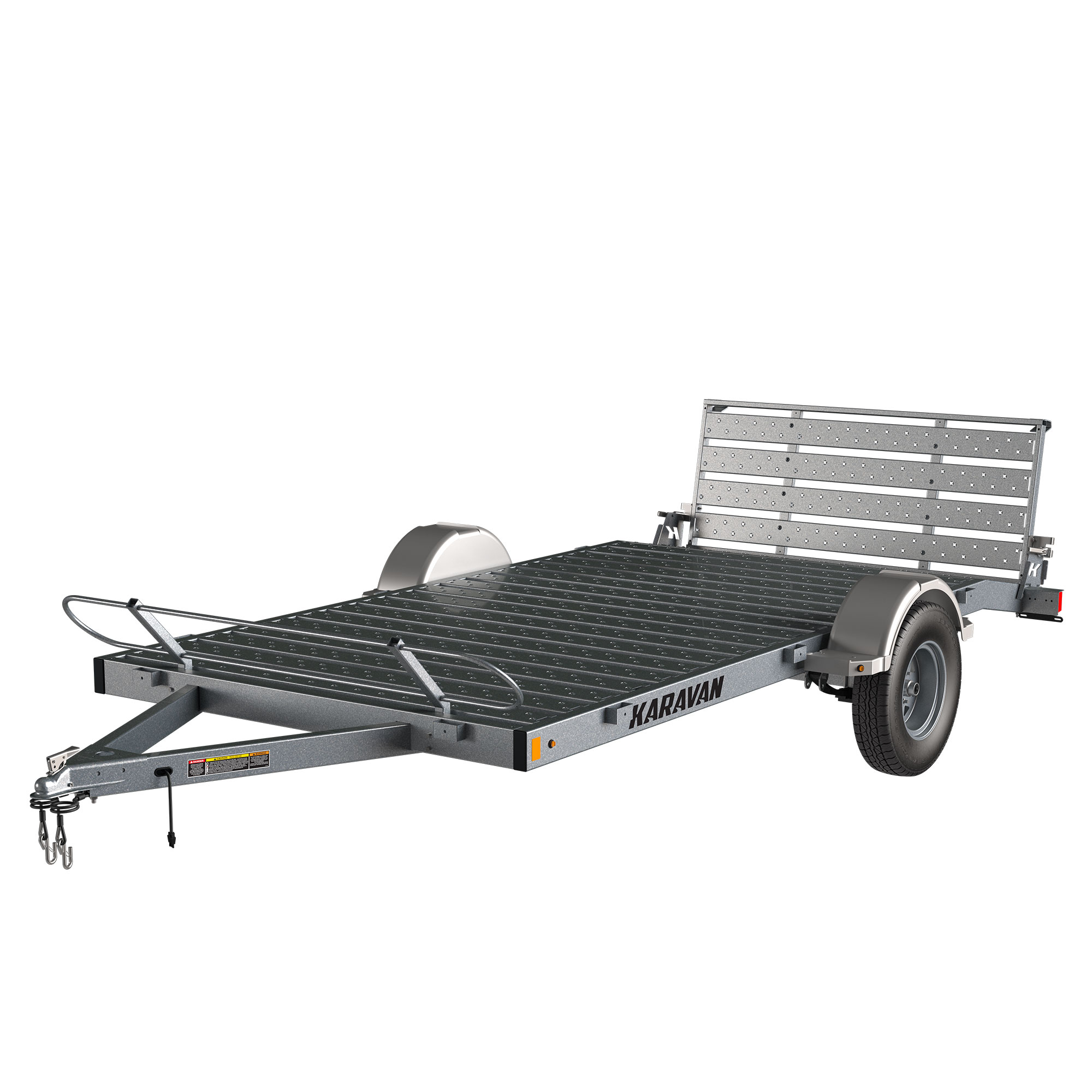 A popular trailer, the 6 x 12 ft. Steel Floor Utility Trailer is great for transporting UTVs and ATVs, this rugged model features an extra durable steel plank floor. The planks are stamped to provide extra traction, and the rear of the trailer slopes downward to create a reduced loading angle. This 12-ft. model can typically fit a smaller UTV or two ATVs, and works great for other uses as well.