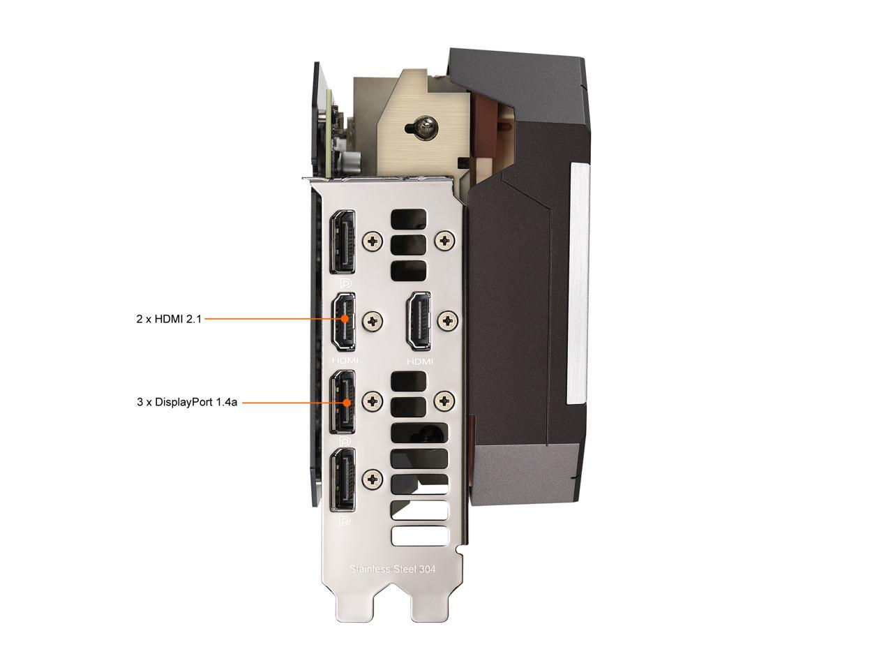 The front panel of the card features a variety of outputs, such as DisplayPort 1.4a and HDMI 2.1. HDMI 2.1 supports up to 48 Gb/s bandwidth and a range of higher resolutions and refresh rates, including 8K at 60fps, 4K at 120fps, and even up to 10K. The RTX 3070 is not just about high-resolution gaming. Computationally intensive programs can utilize the GPU’s 5888 cores to accelerate tasks using CUDA and other APIs.