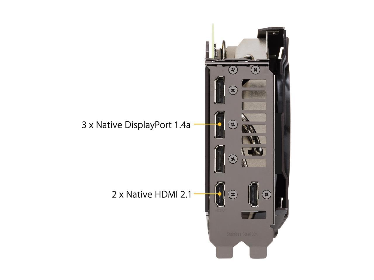 ASUS GeForce RTX 3080 Ti TUF Gaming OC Graphics Card brings the power of real-time ray tracing and AI to your PC games. The Ampere architecture features 2nd Gen RT Cores and 3rd Gen Tensor Cores. The GPU features 12GB of GDDR6X VRAM and a 384-bit memory interface, offering improved performance and power efficiency over the previous Turing-based generation. The front panel of the card features a variety of outputs, such as DisplayPort 1.4a and HDMI 2.1. HDMI 2.1 supports up to 48 Gb/s bandwidth and a range of higher resolutions and refresh rates, including 8K @ 60fps, 4K @ 120fps, and even up to 10K. The RTX 3080 Ti is not just about high-resolution gaming. Computationally intensive programs can utilize the GPU’s 10240 cores to accelerate tasks using CUDA and other APIs.