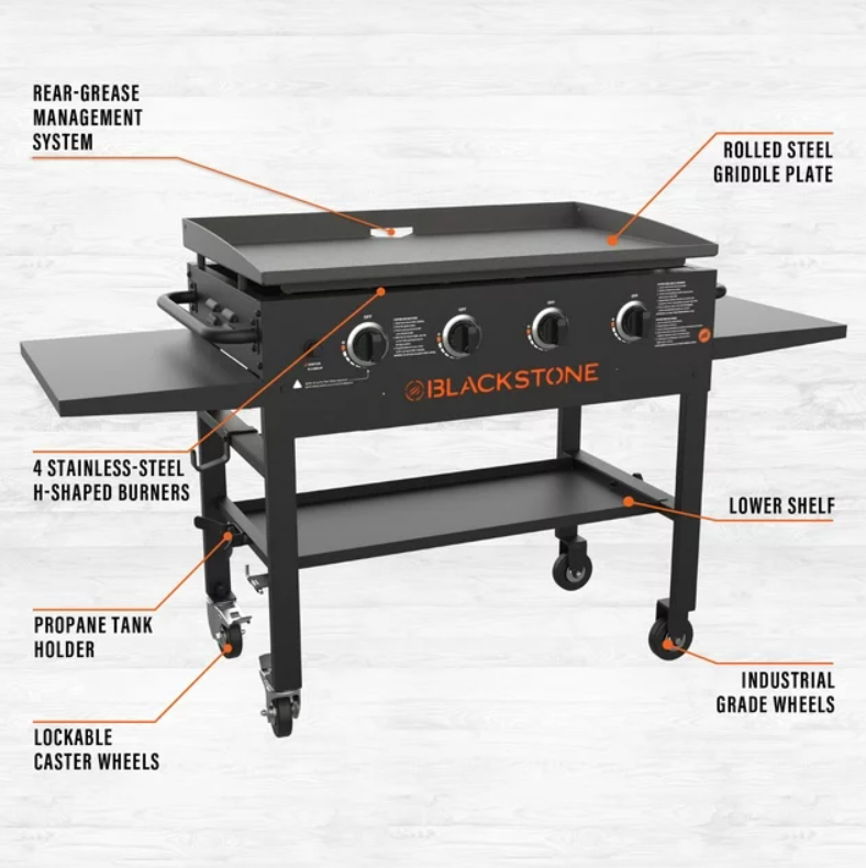 - Blackstone 4-Burner 36″ Griddle Cooking Station with Side Shelves