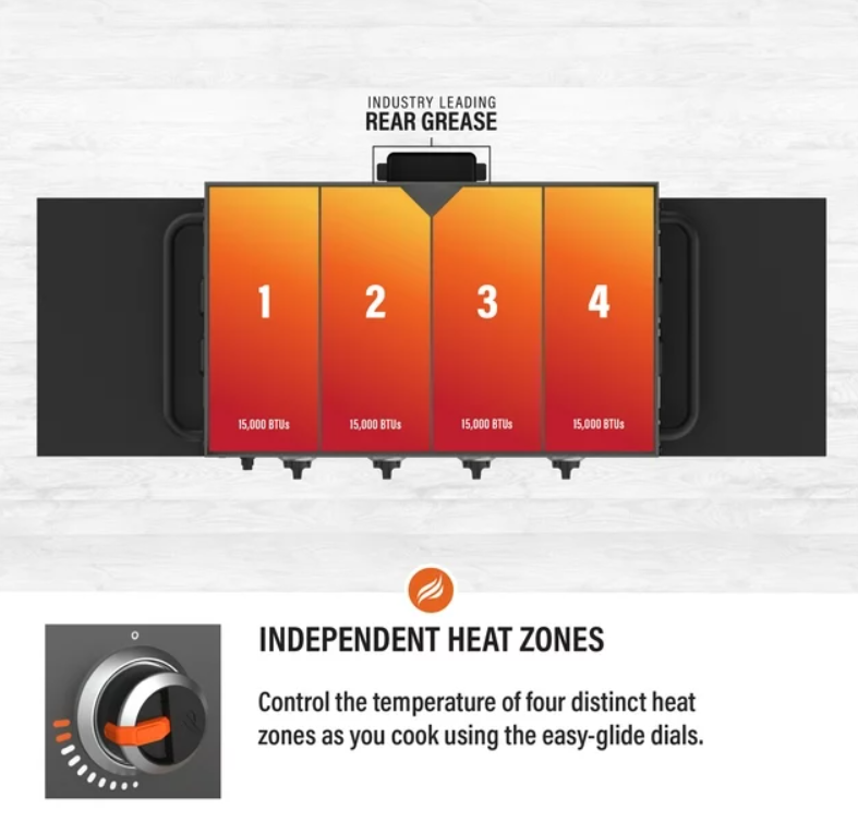 - Four independently controlled cooking zones