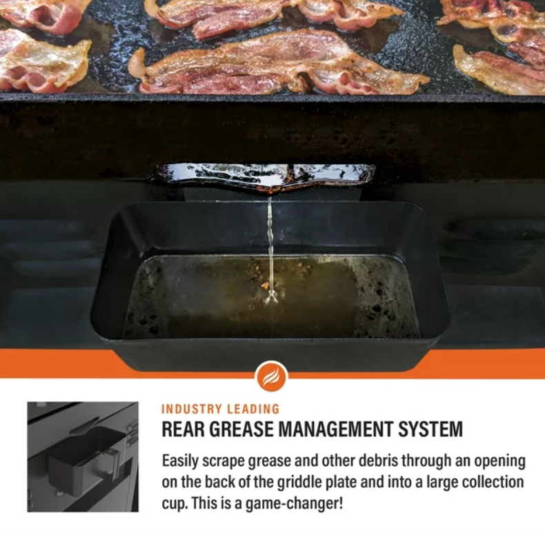 - Patented rear grease management system for easy cleanup