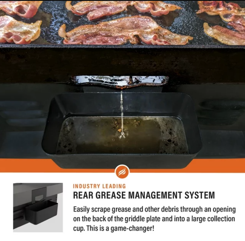 - Stainless steel burner provides evenly dispursed heat across the griddle surface