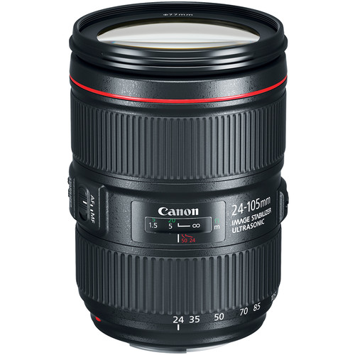 The body has been further refined for comfort and ease of access, as well as durability and weather resistance. The Canon N3 remote port has been relocated to the front of the camera body and they have added both GPS and Wi-Fi with NFC to make this model a connected camera. This kit bundles the camera with the EF 24-105mm f/4L IS II USM Lens, an updated version of one of the most popular zoom lenses ever available in Canon’s lens lineup. Offering an extremely versatile 24-105mm zoom range as well as a constant f/4 maximum aperture, users can shoot a variety of subjects with ease. This model also features improved peripheral illumination compared to its predecessor.