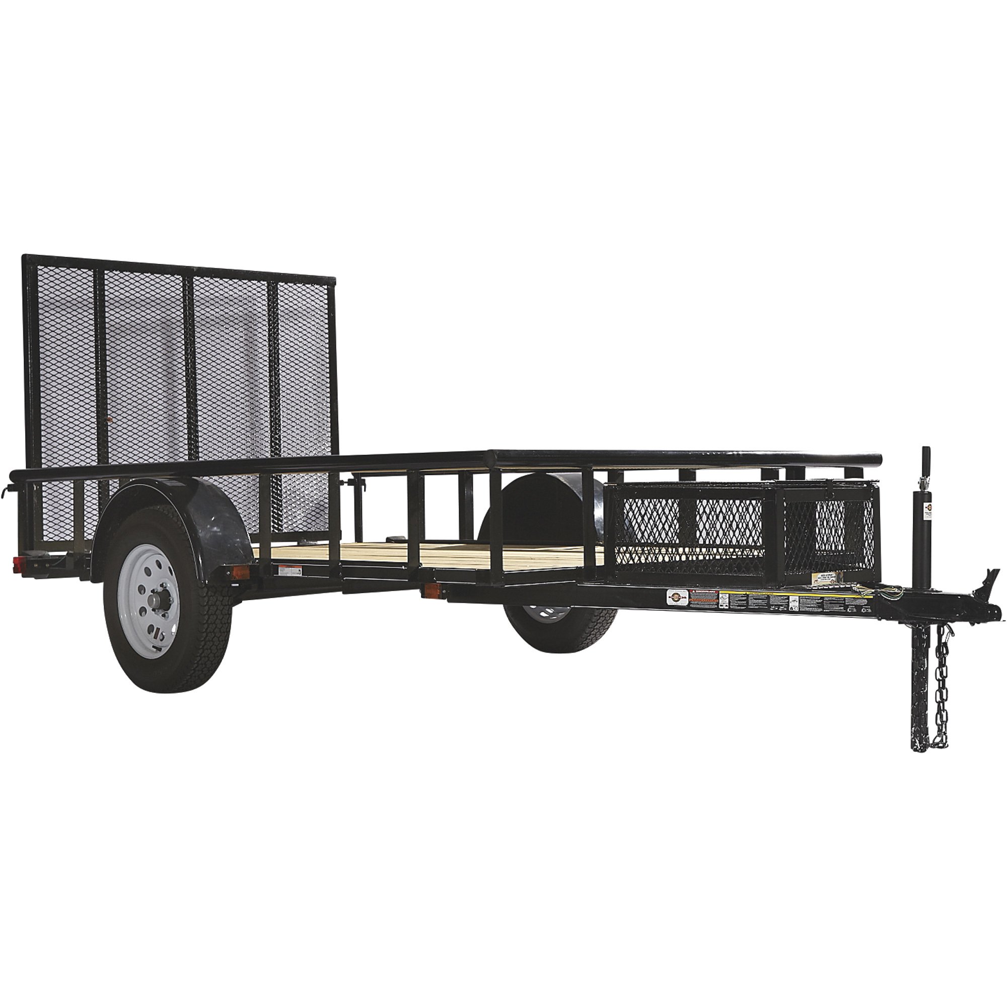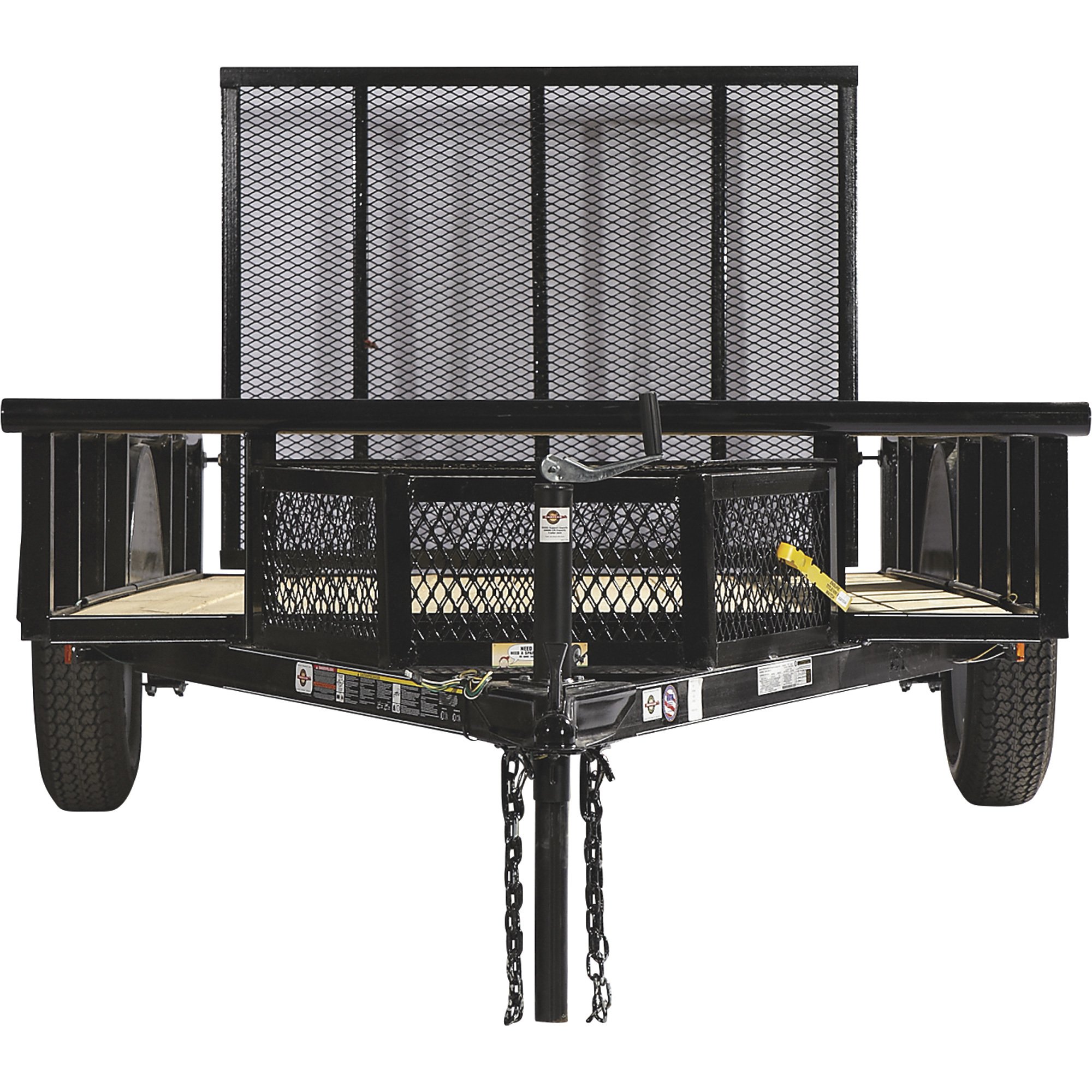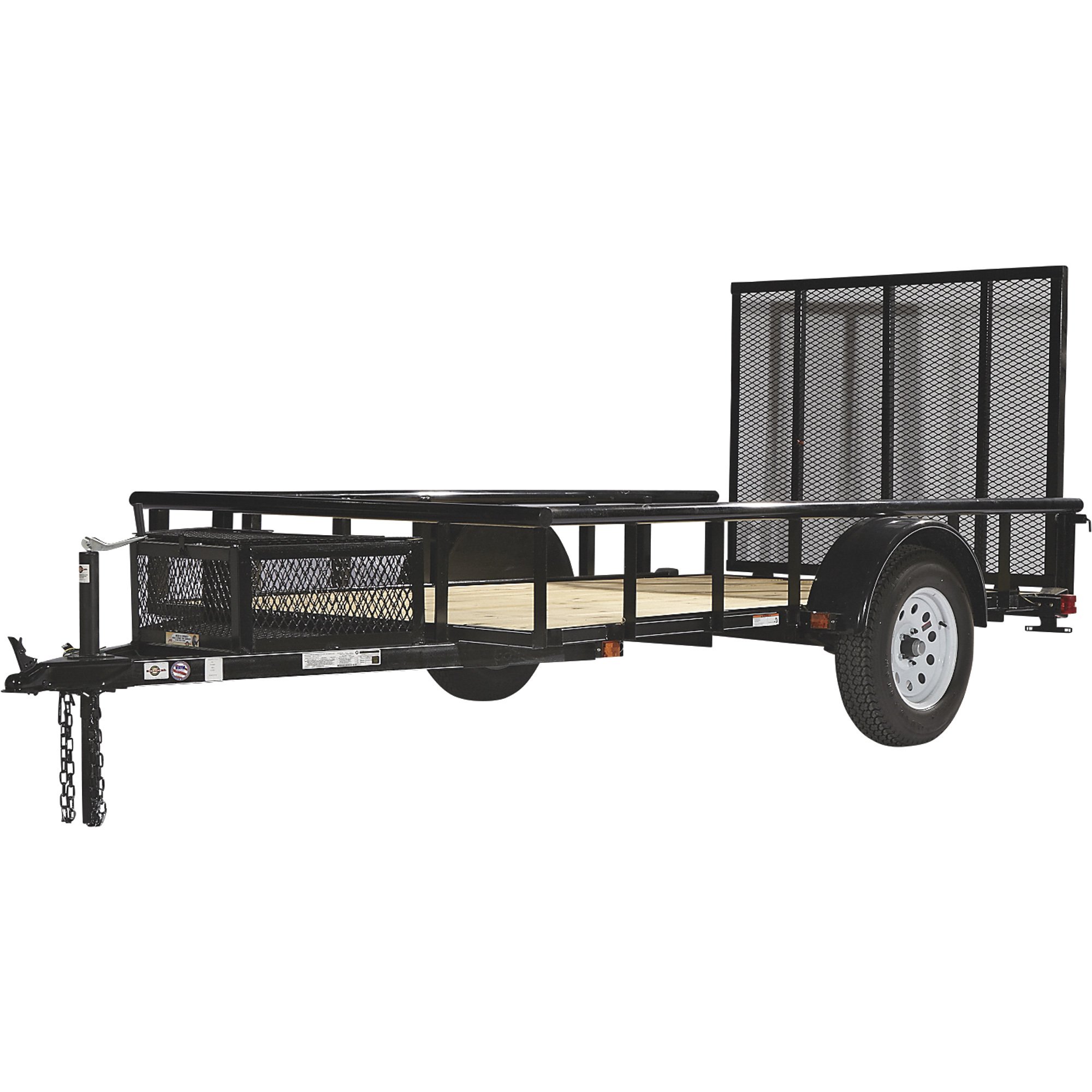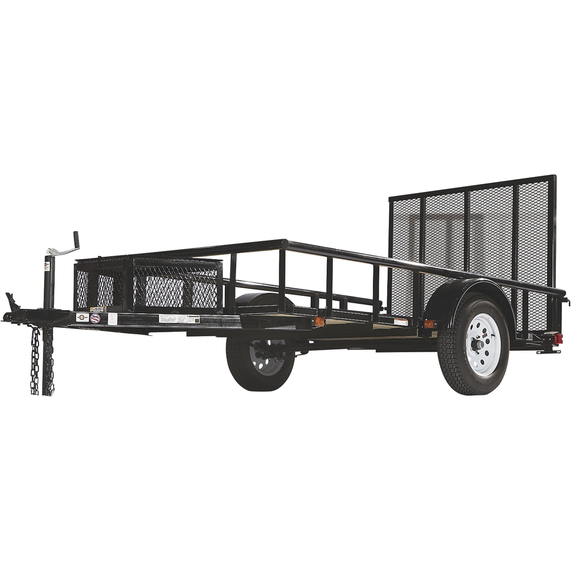 The Carry-On Trailer Pipe Top Trailers are built with pipe top side rails for added strength. Trailers also feature rear gate/ramp for easy loading and unloading, treated wood deck, steel frame, tires with modular rims, 2in. A-frame coupler, lighting, round steel fenders and more. Available in store only. U.S.A.