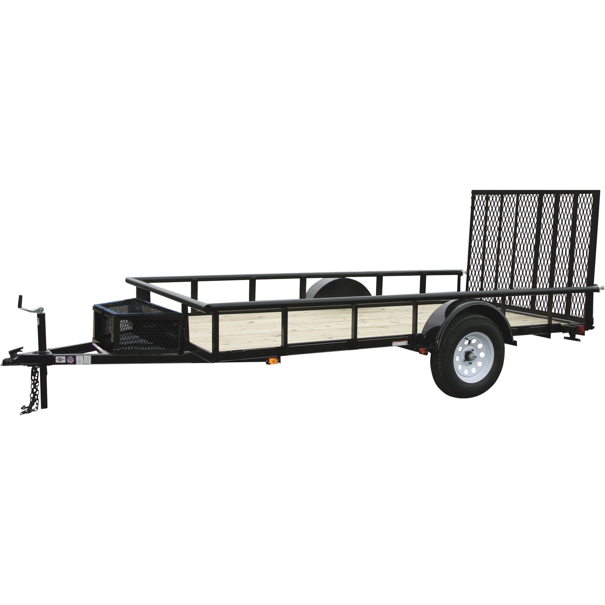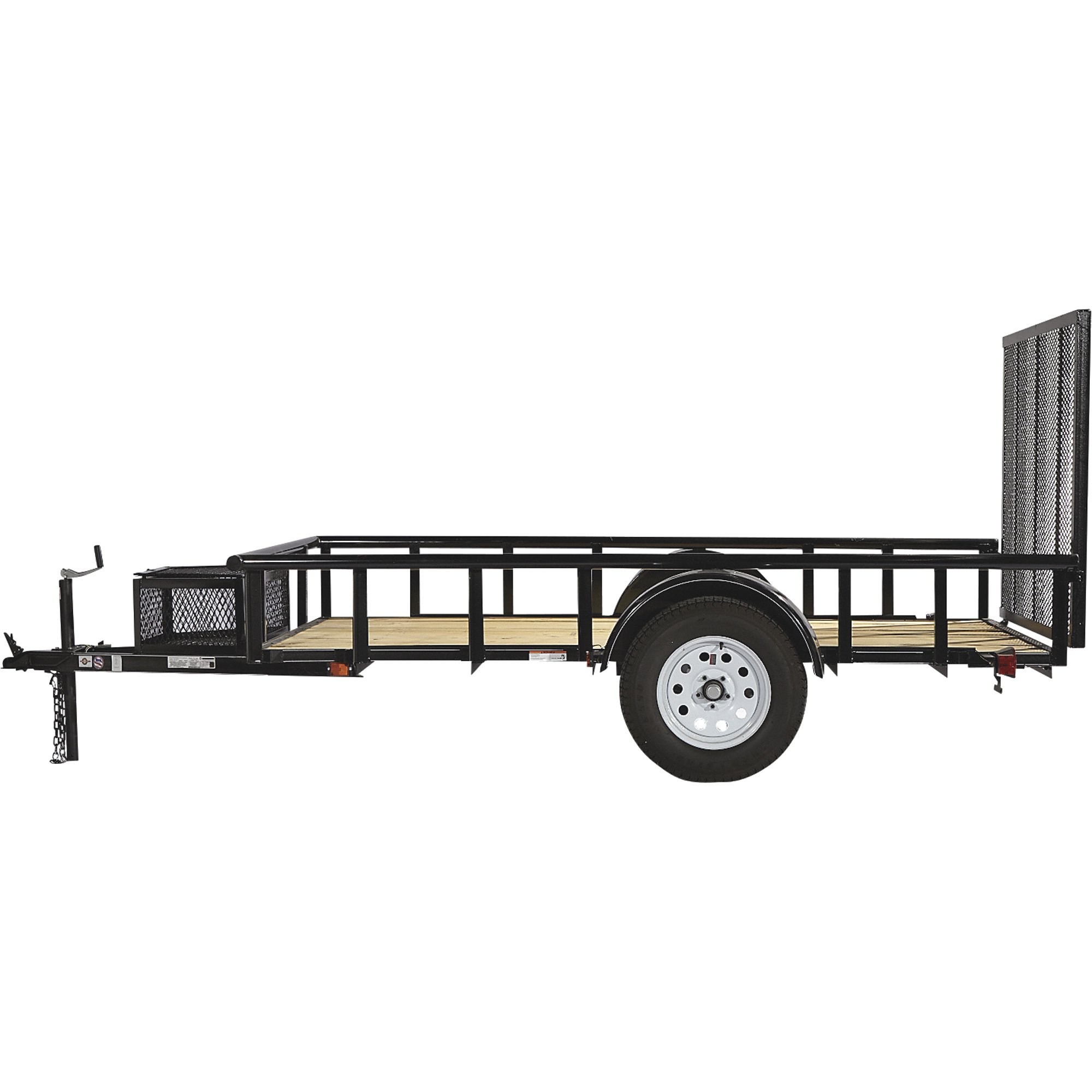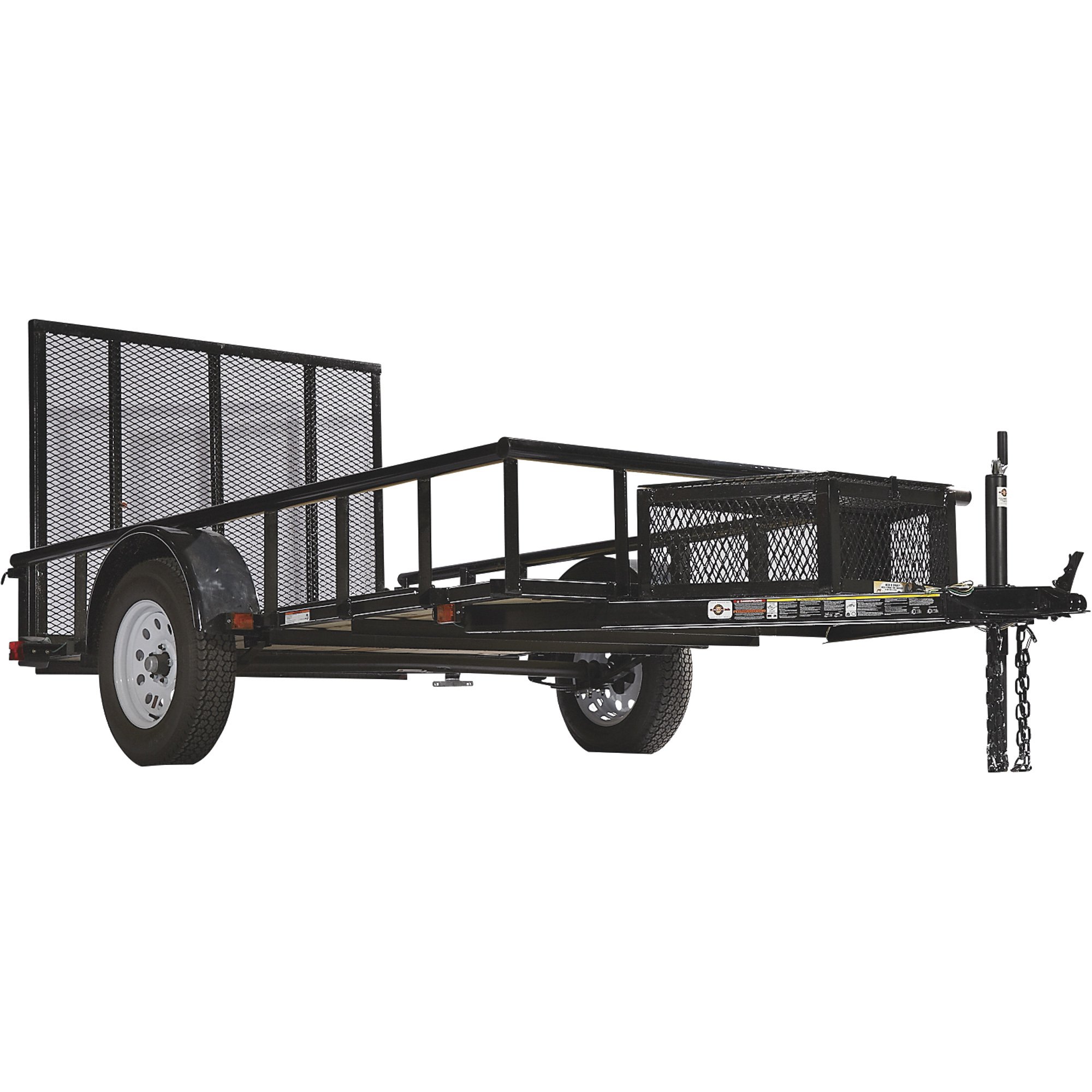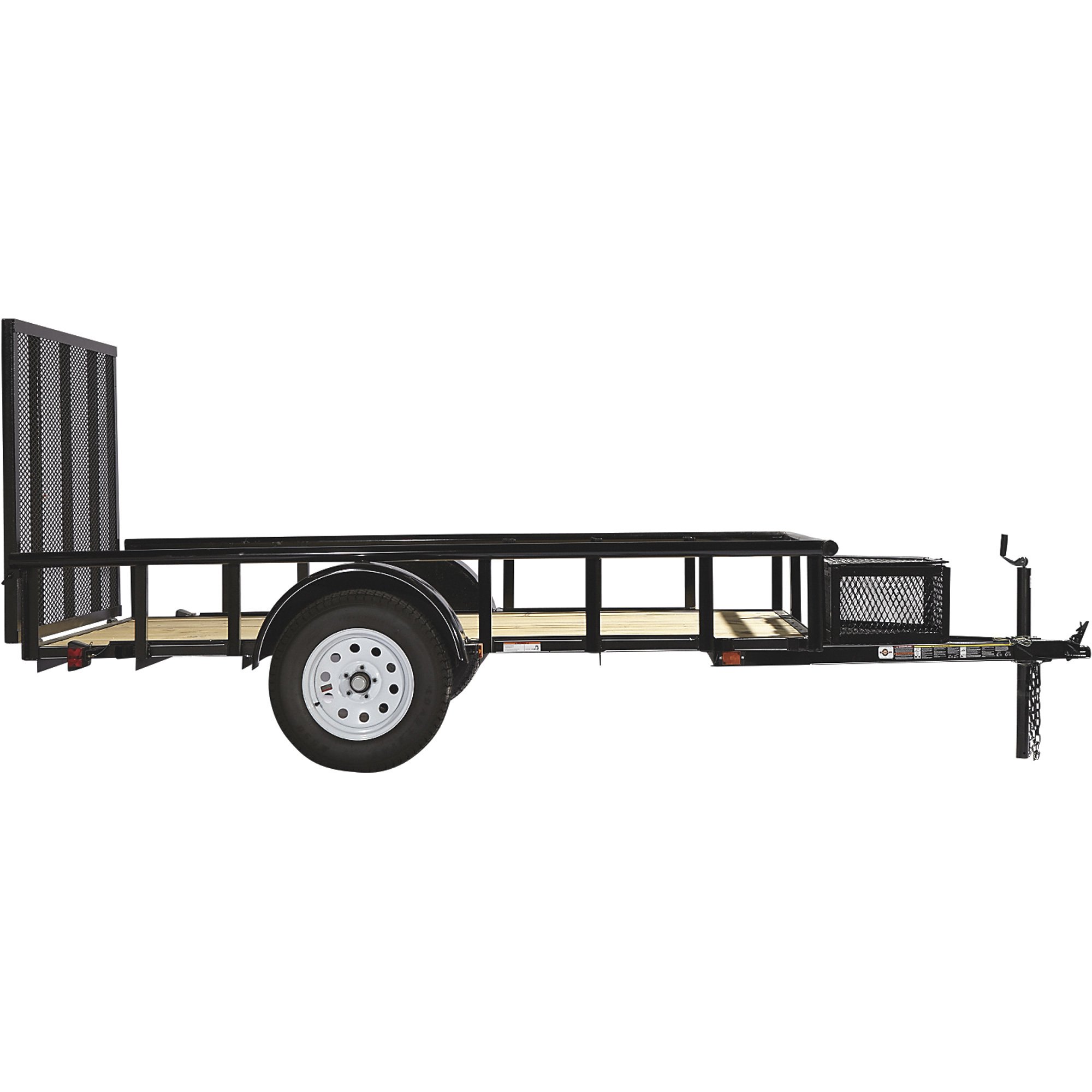 The Carry-On Trailer Pipe Top Trailers are built with pipe top side rails for added strength. Trailers also feature rear gate/ramp for easy loading and unloading, treated wood deck, steel frame, tires with modular rims, 2in. A-frame coupler, lighting, round steel fenders and more. Available in store only. U.S.A.