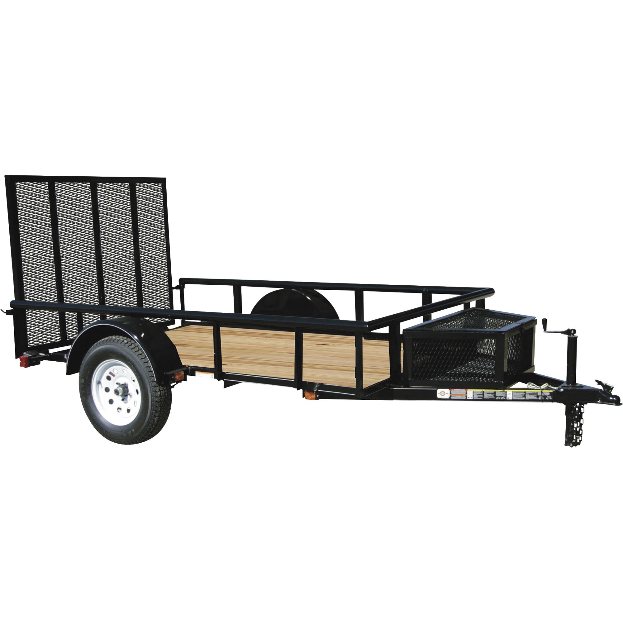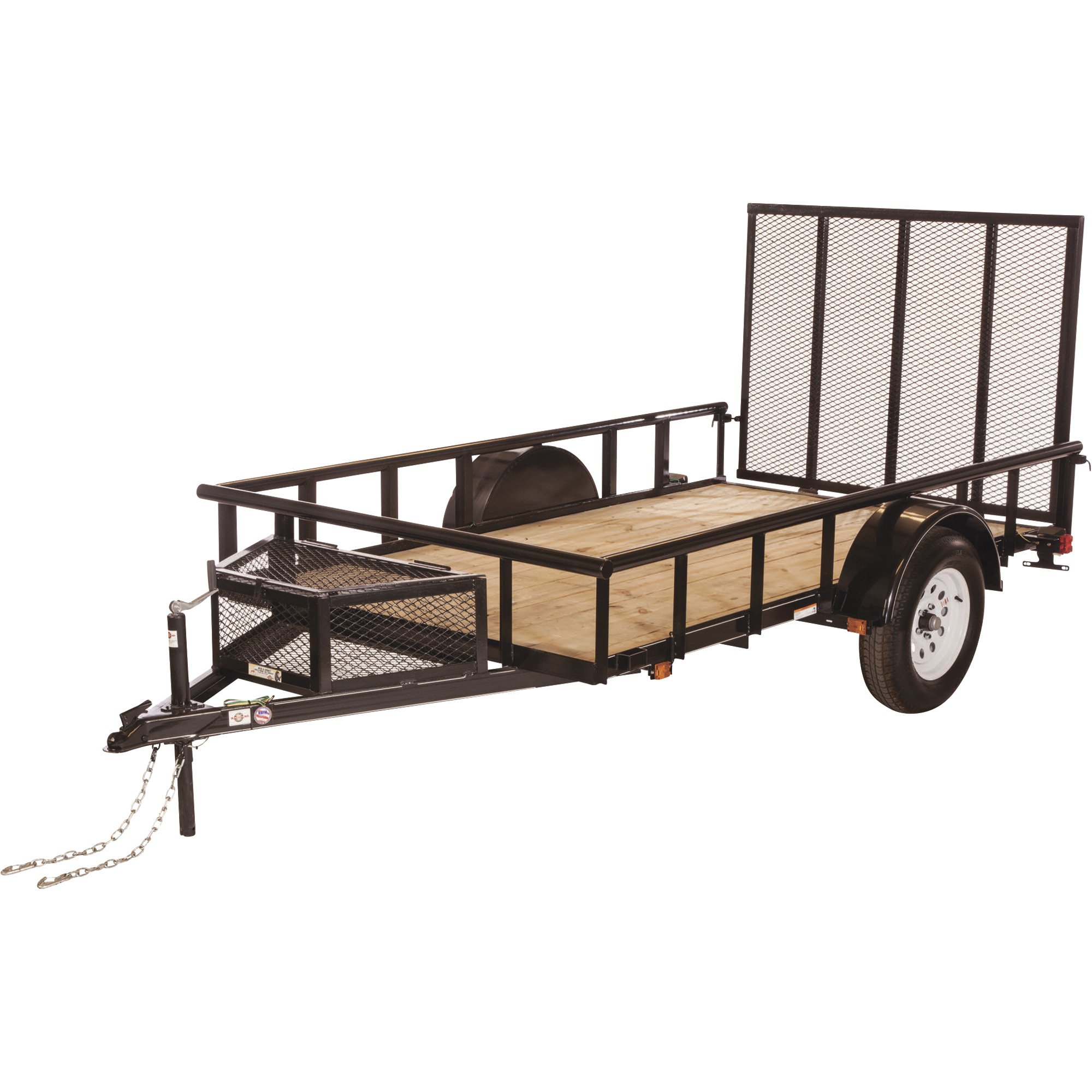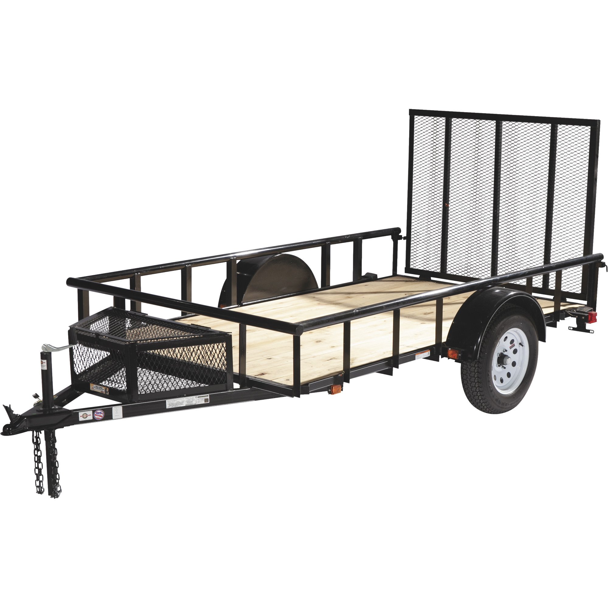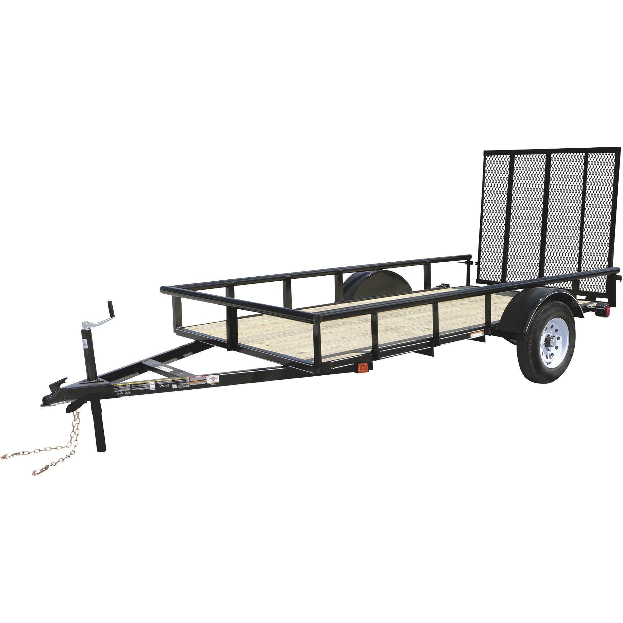 The Carry-On Trailer Pipe Top Trailers are built with pipe top side rails for added strength. Trailers also feature rear gate/ramp for easy loading and unloading, treated wood deck, steel frame, tires with modular rims, 2in. A-frame coupler, lighting, round steel fenders and more. Available in store only. U.S.A.