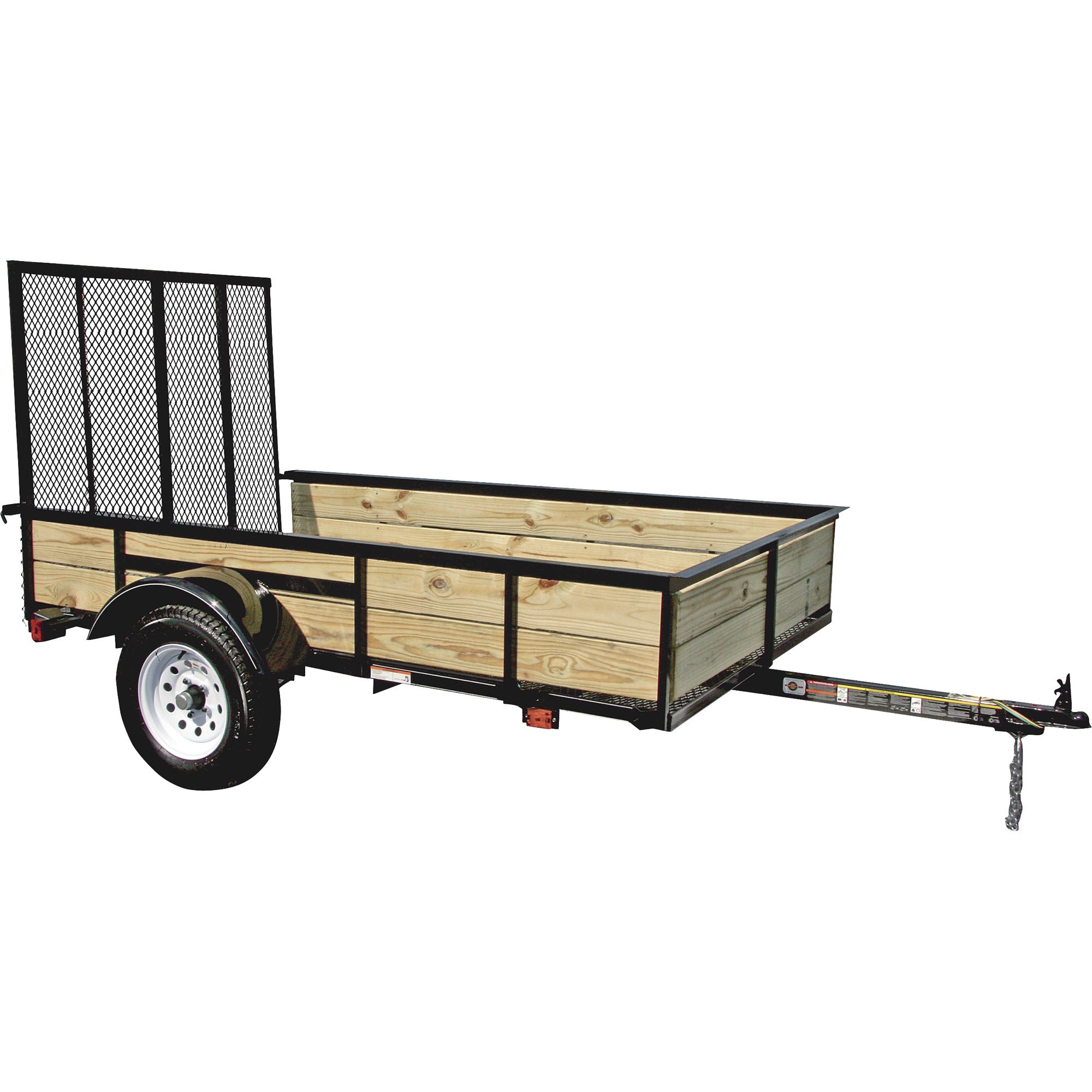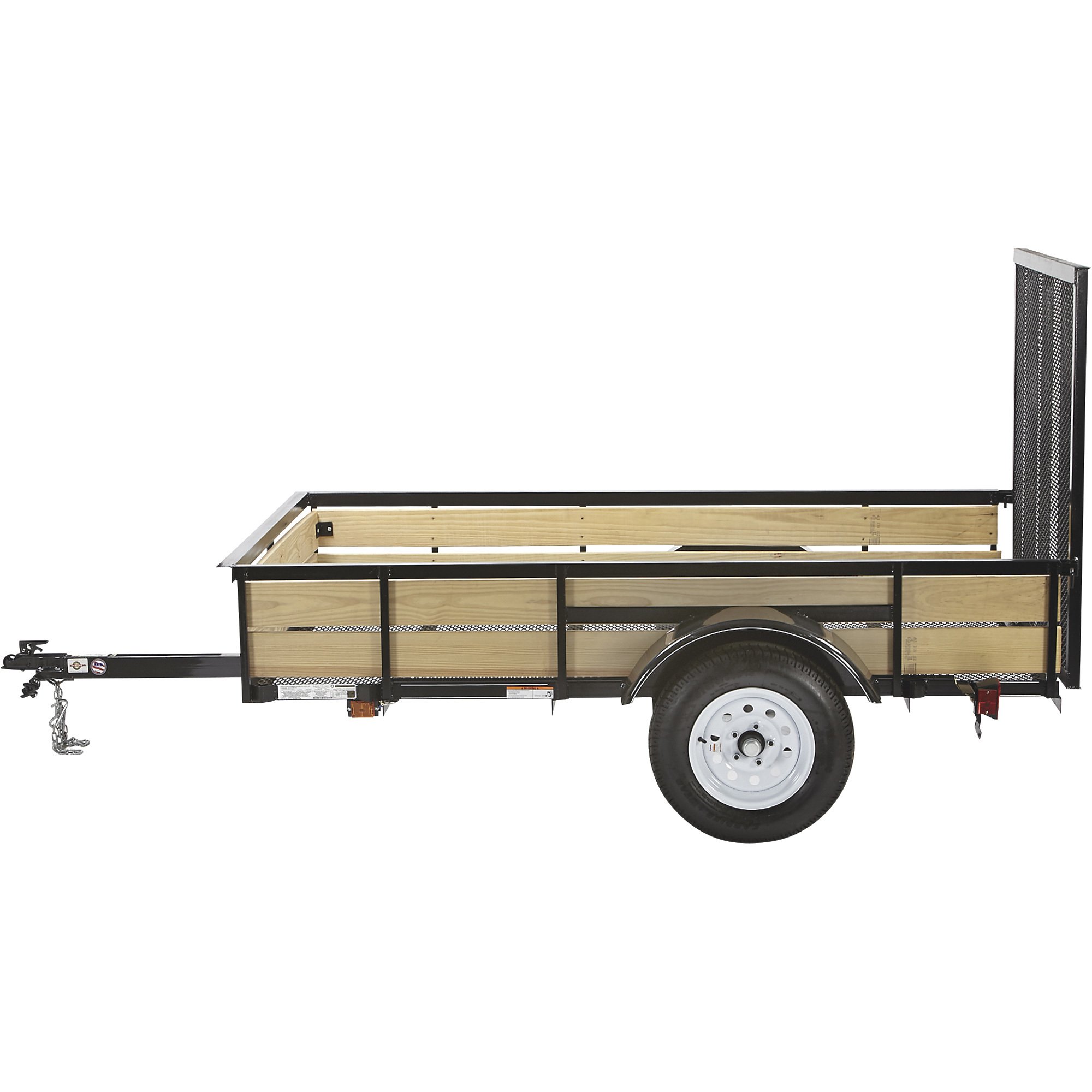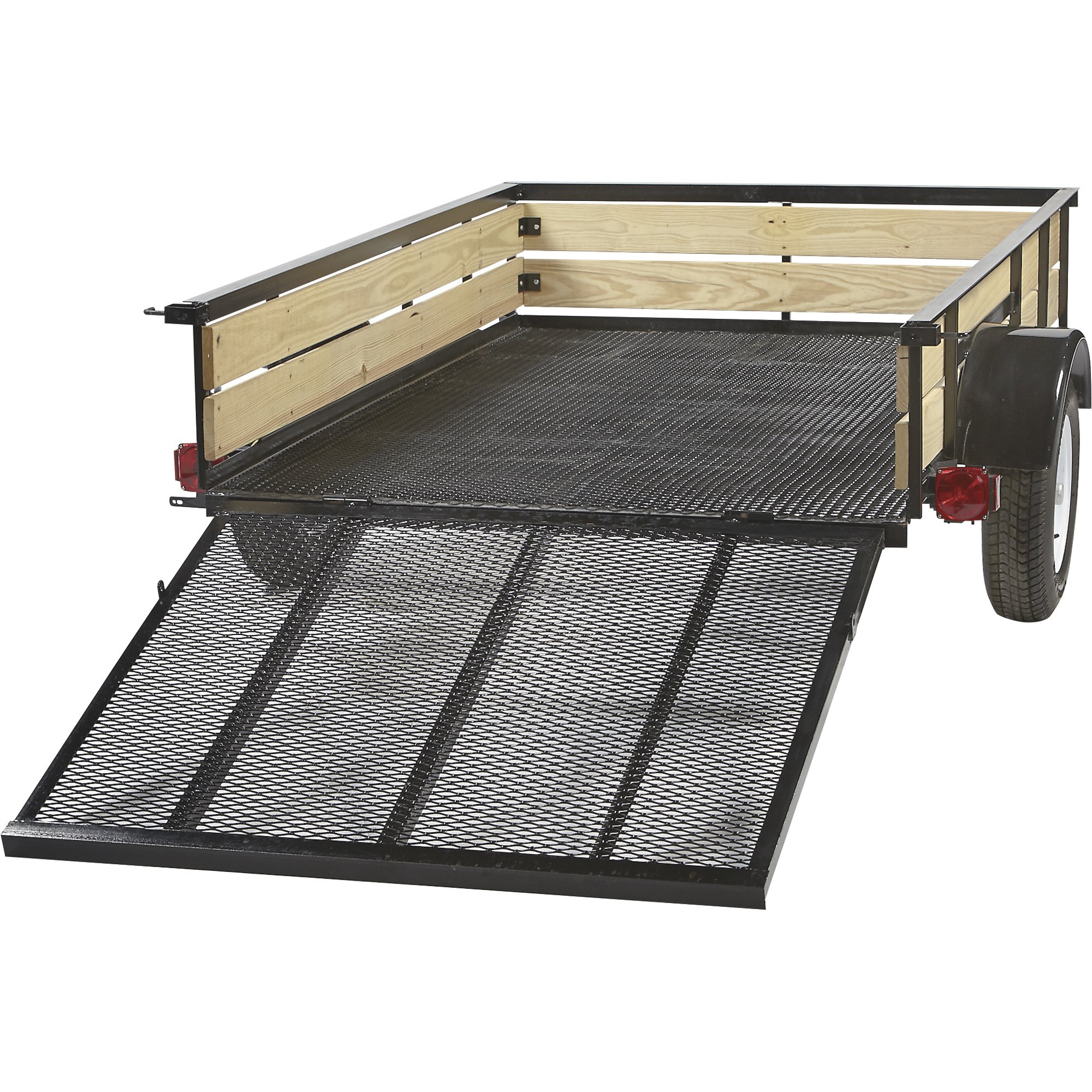These Carry-On Trailers have a rear gate/ramp for easy loading and unloading. Trailers also feature lighting with 4-way flat connectors, side rails and round fenders. Available in store only. U.S.A.