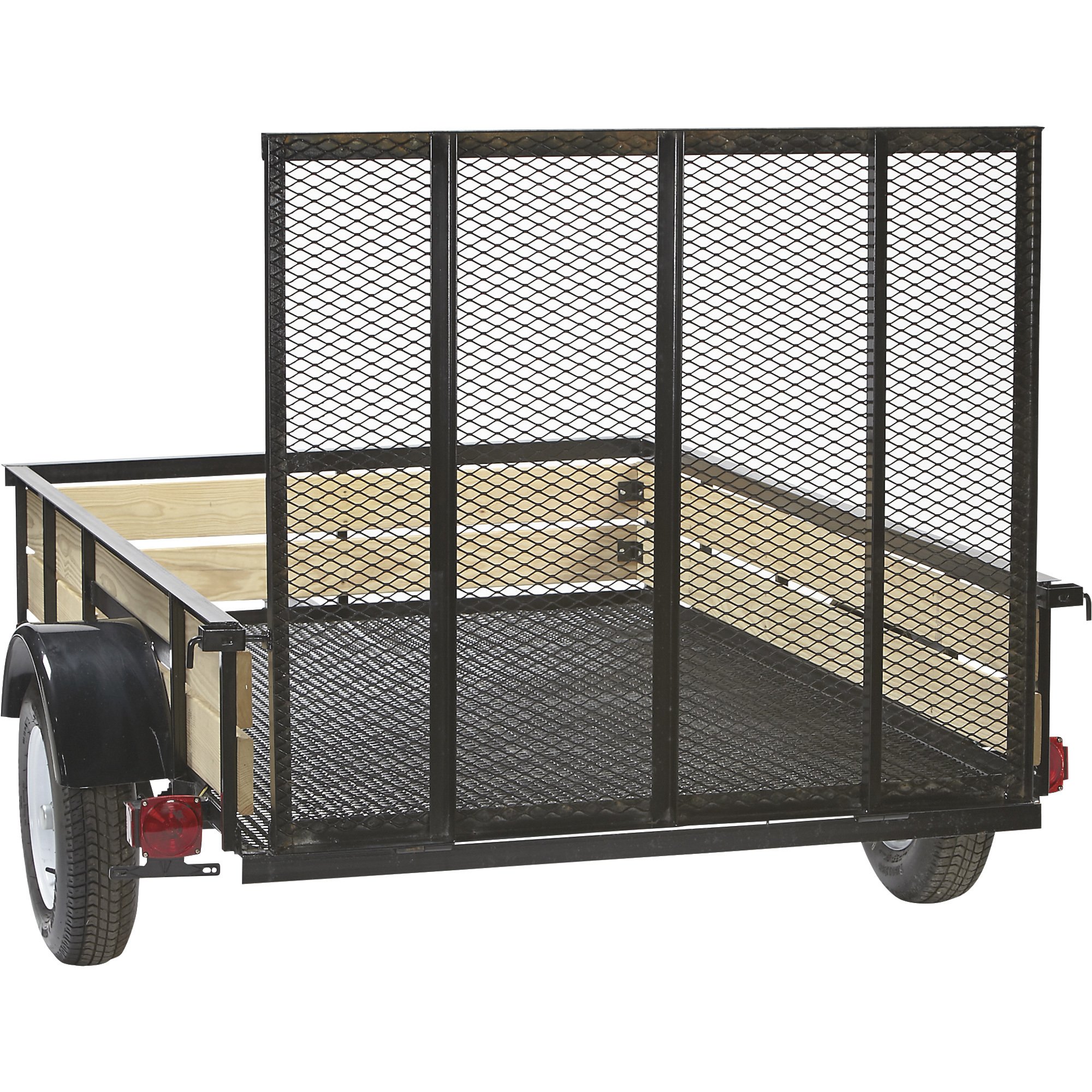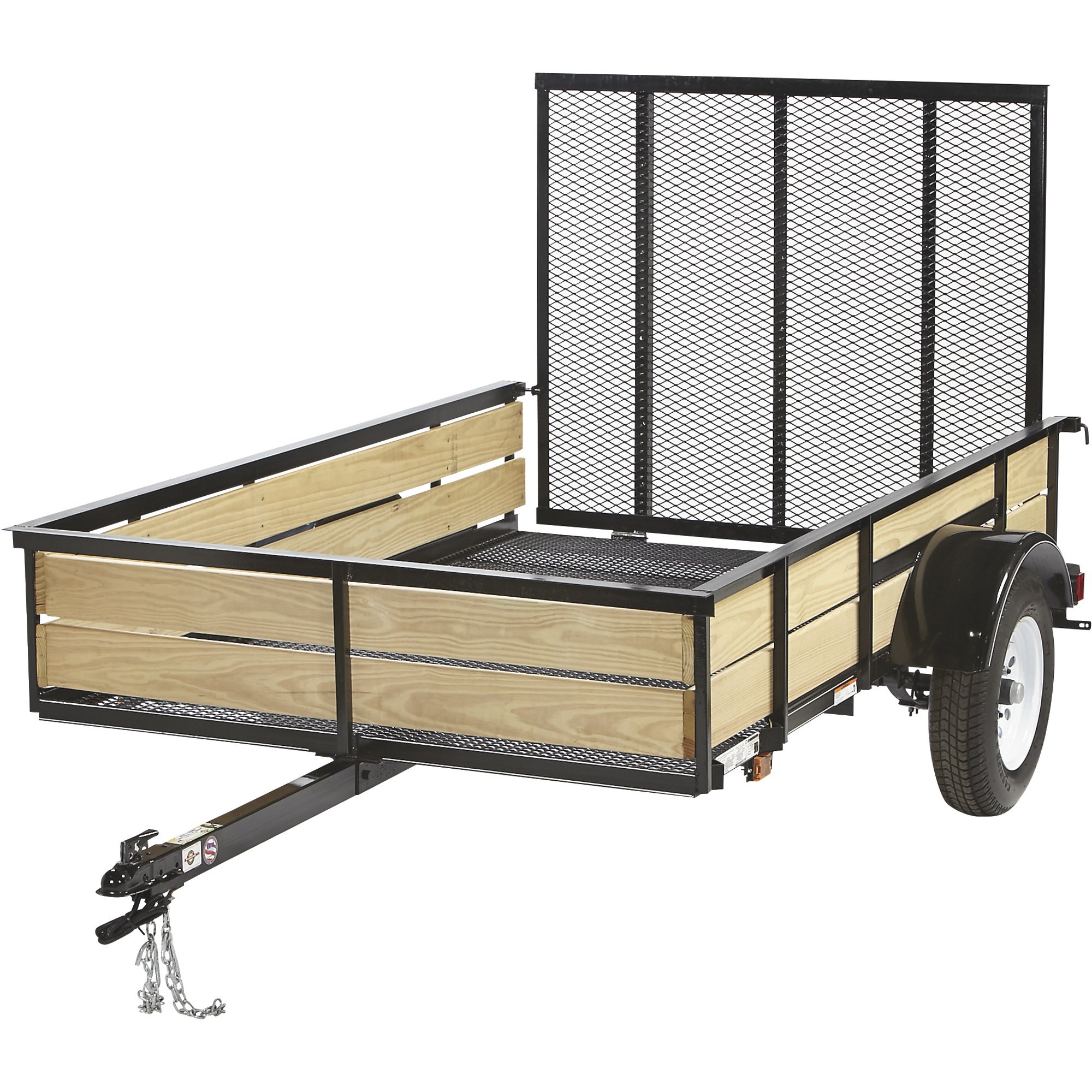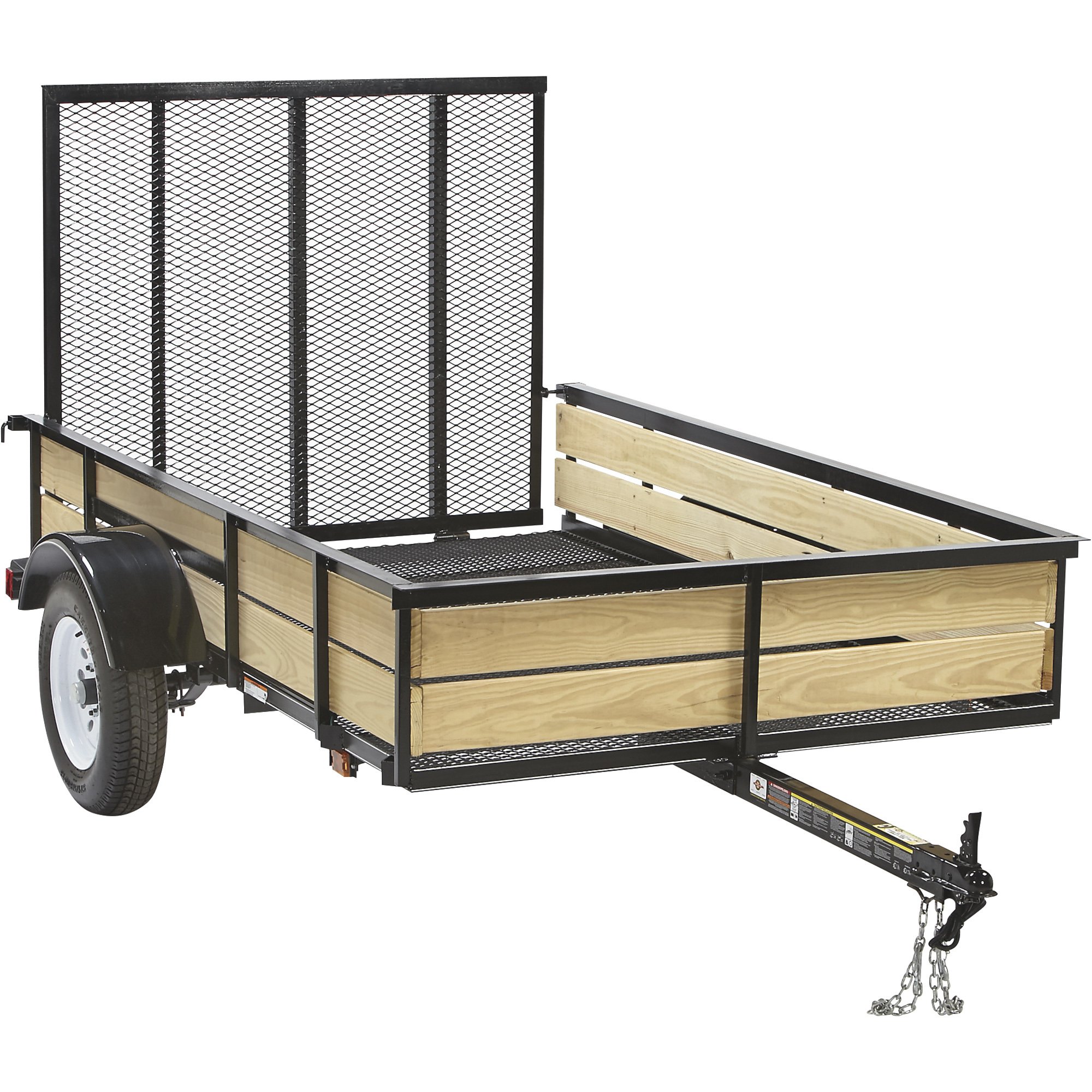 These Carry-On Trailers have a rear gate/ramp for easy loading and unloading. Trailers also feature lighting with 4-way flat connectors, side rails and round fenders. Available in store only. U.S.A.
