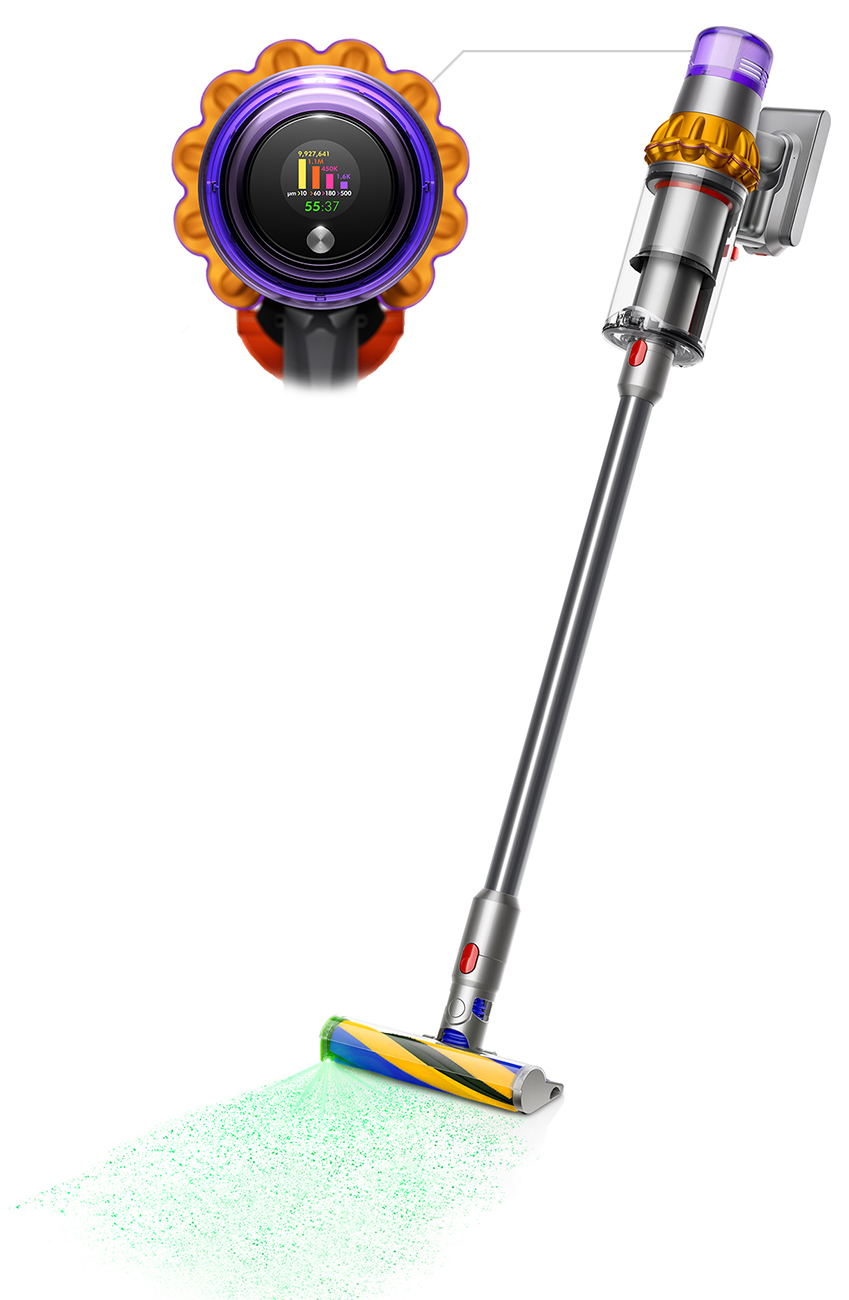 - Laser reveals microscopic dust. The most powerful, intelligent cordless vacuum.¹