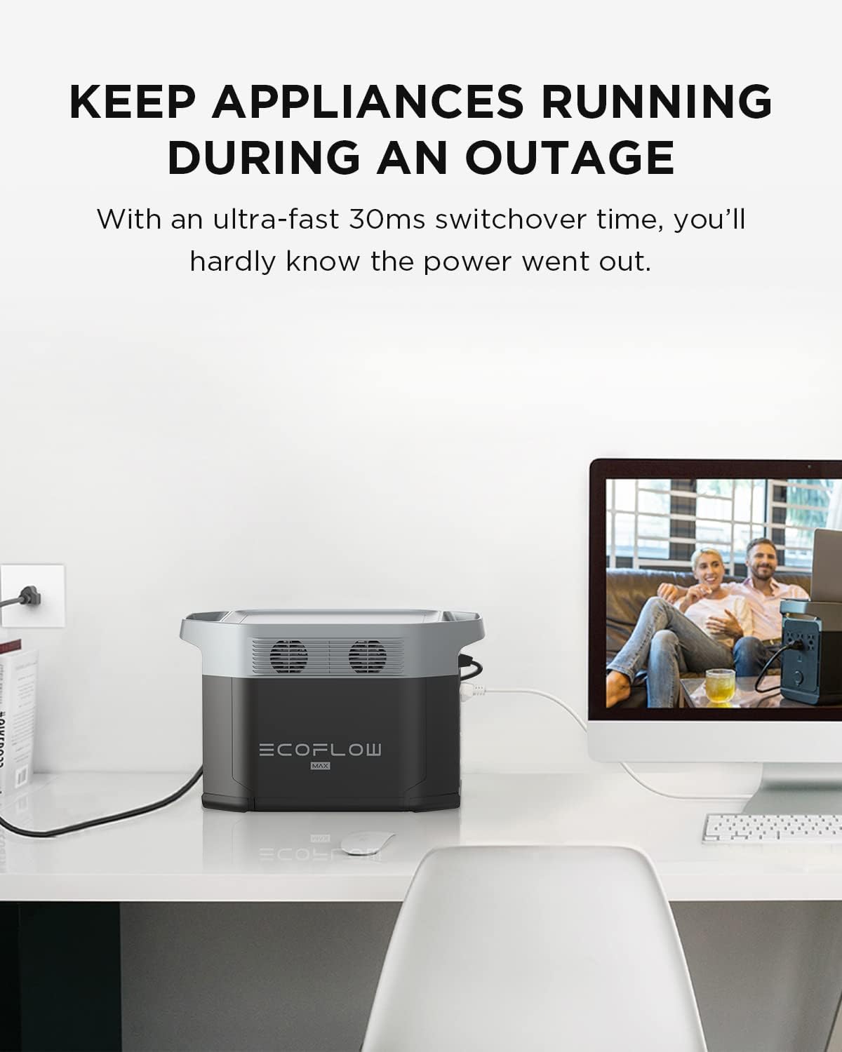 - Plug and Play Home Backup Power. Simply connect DELTA Max to your power inlet box for instant home backup when the power goes down.