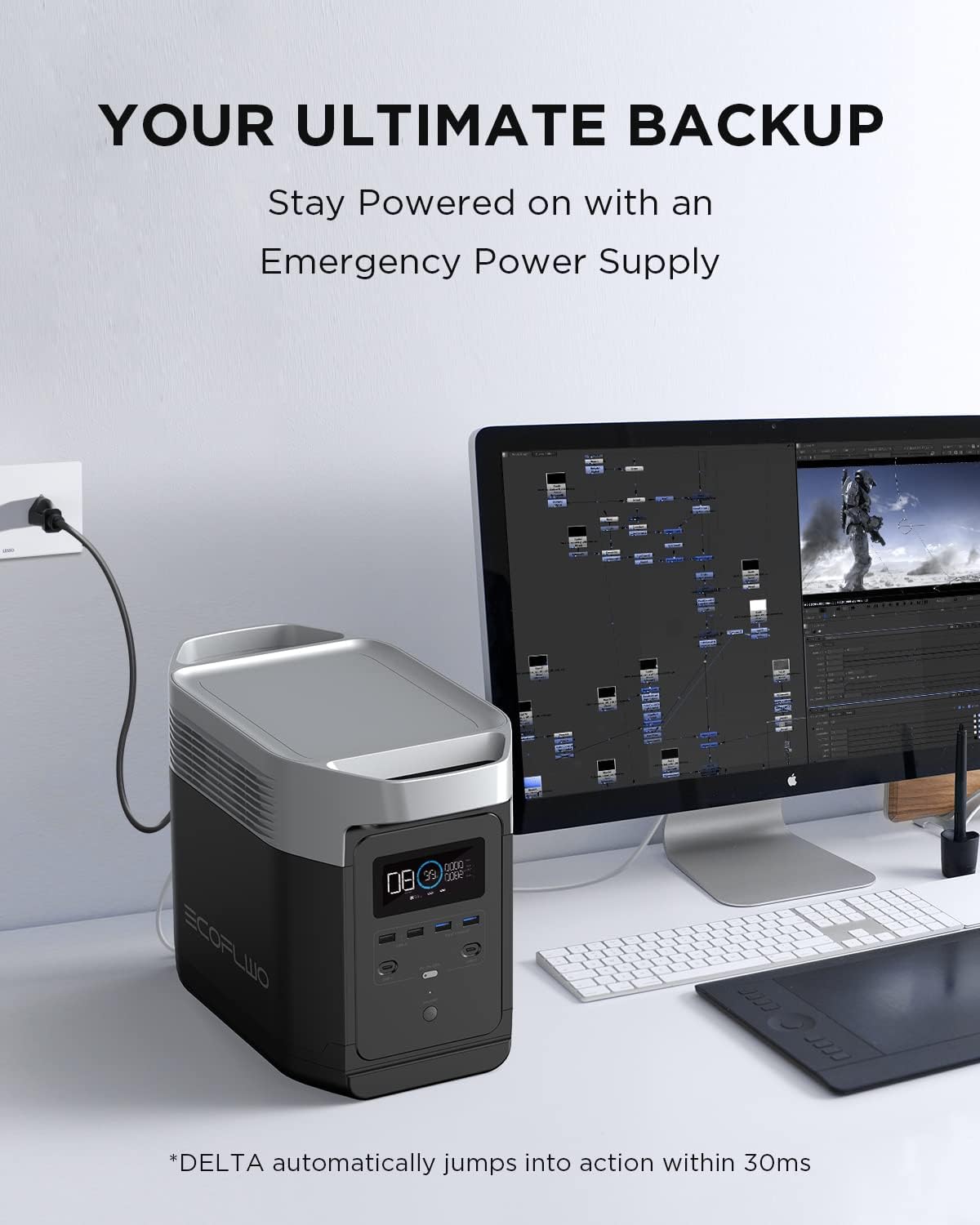 - 0-80% in under 1 Hour. Ecoflow DELTA power station recharged at 10 times the speed of most portable power stations in the market with just a standard AC cable.