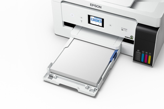 A 250-sheet input tray work with documents up to 8.5 x 14″, and a long-document mode on the 20-sheet rear feed enables the production of media up to 13 x 47.24″. For scanning and copying, the unit has a flatbed scanner with an integrated ADF that allows scans up to 8.5 x 14″, and the optical scan resolution is an impressive 1200 dpi. Settings can be checked and quickly changed via the 2.7″ color touchscreen, and for maximum versatility during setup, the ET-15000 is equipped with USB 2.0, Ethernet, and Wi-Fi connectivity. Additionally, mobile printing is made possible via Google Cloud Print, Apple AirPrint, Mopria, Epson Connect Email Print, and the Epson iPrint Mobile App.