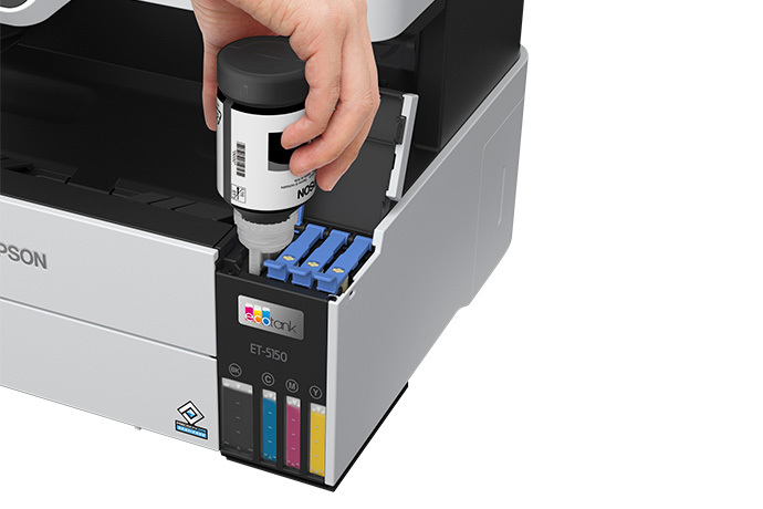 - EcoTank technology eliminates the need for cartridges and permits filling with replacement bottles, providing users with more affordable ink and the ability to print up to 7500 black pages and 6000 color pages per tank