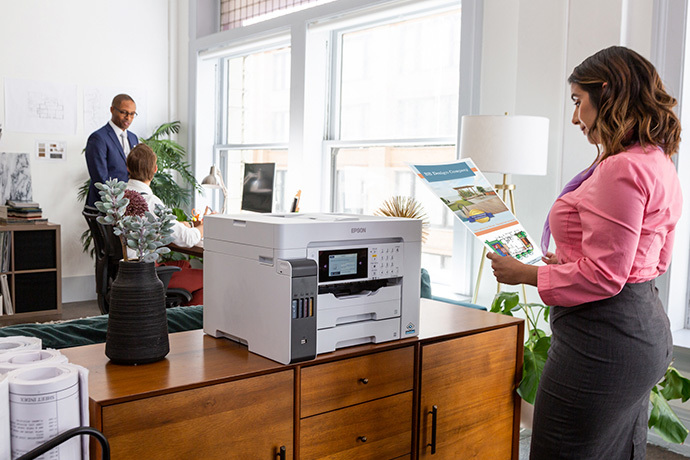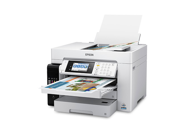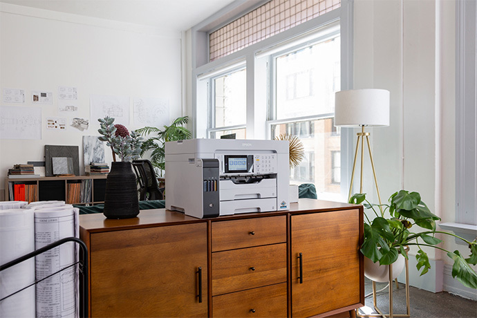 Two 250-sheet input trays work with documents up to 11 x 17″, and a long-document mode on the rear feed enables the production of media up to 17 x 47.25″. For scanning and copying, the unit has a flatbed scanner with an integrated ADF that allows scans up to 11 x 17″ at an impressive 1200 dpi. Settings can be checked and quickly changed via the 4.3″ color touchscreen, and for maximum versatility during setup, the ST-C8090 is equipped with USB, Ethernet, and Wi-Fi connectivity. Additionally, mobile printing is made possible via Apple AirPrint, Mopria, Epson Connect Email Print, and the Epson iPrint Mobile App.