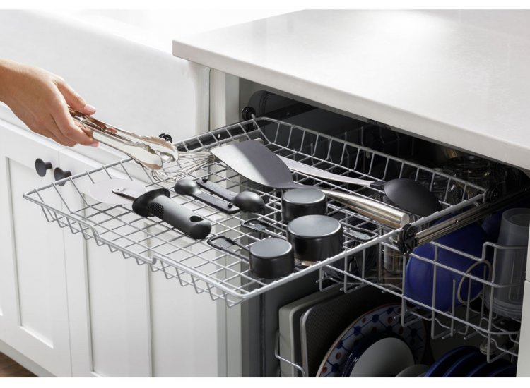 This dishwasher has a third rack without dedicated compartments, giving you extra capacity and flexibility to store everything from lids and serving utensils to small bowls.