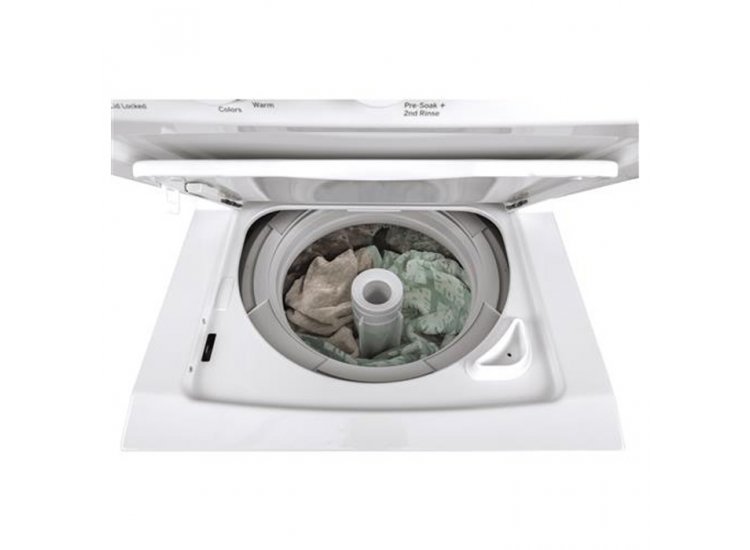 GE Unitized Spacemaker 24″ White Stack Washer With Electric Dryer