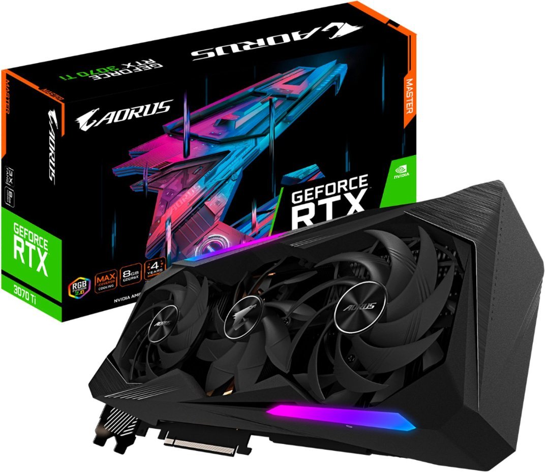 Gigabyte GeForce RTX 3070 Ti AORUS MASTER Graphics Card brings the power of real-time ray tracing and AI to your PC games. The GPU features 8GB of GDDR6X VRAM and a 256-bit memory interface, offering improved performance and power efficiency over the previous Turing-based generation.