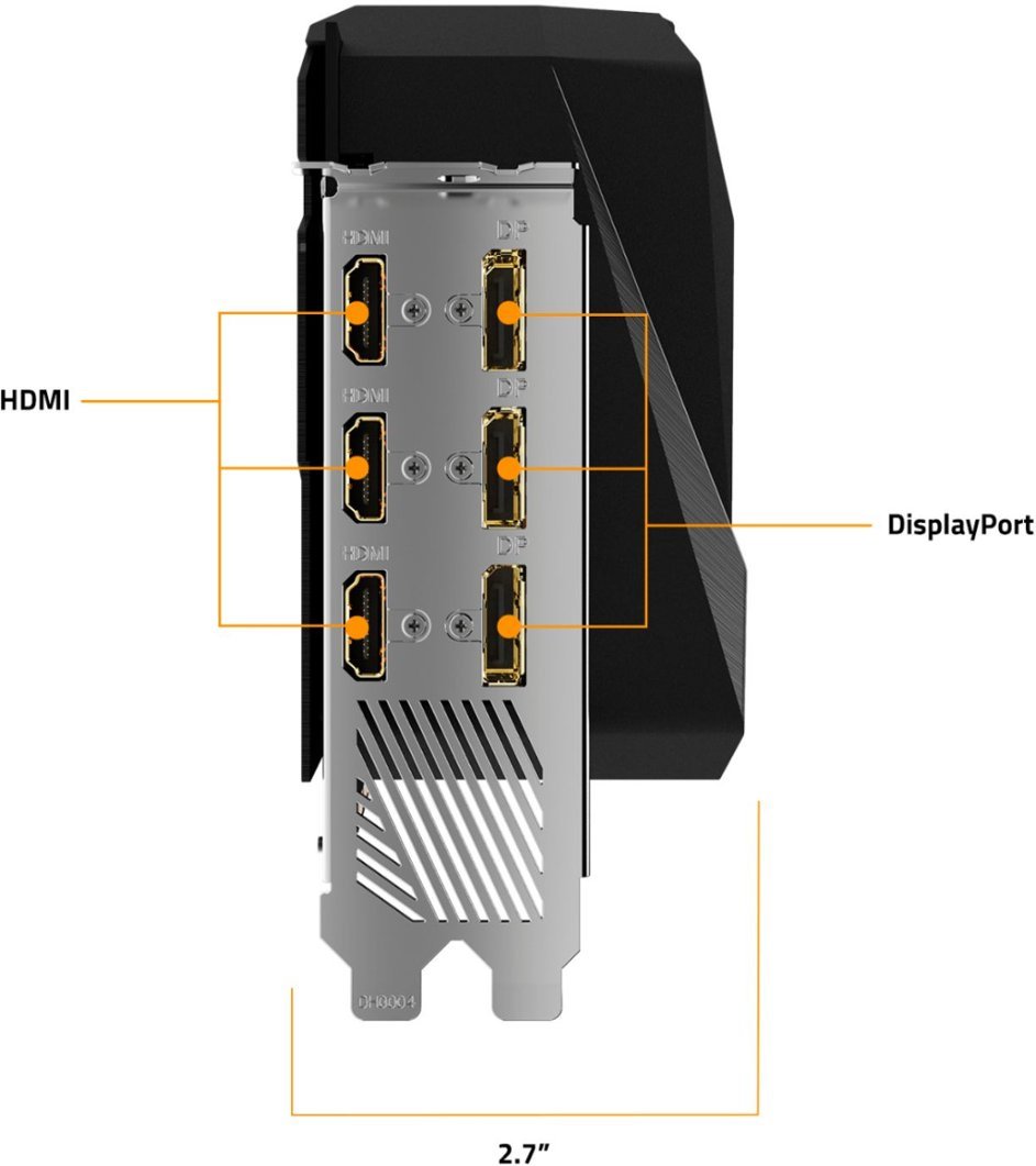 The front panel of the card features a variety of outputs, such as DisplayPort 1.4a and HDMI 2.1. HDMI 2.1 supports up to 48 Gb/s bandwidth and a range of higher resolutions and refresh rates, including 8K at 60fps, 4K at 120fps, and even up to 10K. The RTX 3070 Ti is not just about high-resolution gaming. Computationally intensive programs can utilize the GPU’s 6144 cores to accelerate tasks using CUDA and other APIs.
