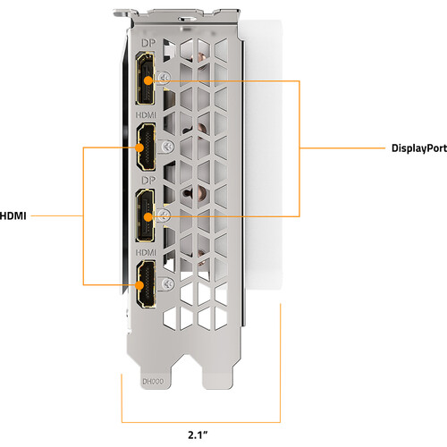 The front panel of the card features a variety of outputs, such as DisplayPort 1.4a and HDMI 2.1. HDMI 2.1 supports up to 48 Gb/s bandwidth and a range of higher resolutions and refresh rates, including 8K at 60fps, 4K at 120fps, and even up to 10K. The RTX 3070 Ti is not just about high-resolution gaming. Computationally intensive programs can utilize the GPU’s 6144 cores to accelerate tasks using CUDA and other APIs.
