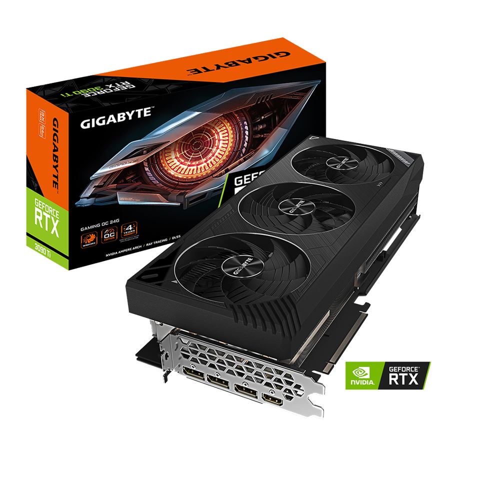 Gigabyte GeForce RTX 3090 Ti GAMING Graphics Card brings the power of real-time ray tracing and AI to your PC games. The Ampere architecture features 2nd Gen RT Cores and 3rd Gen Tensor Cores. The GPU features 24GB of GDDR6X VRAM and a 384-bit memory interface, offering improved performance and power efficiency over the previous Turing-based generation. The front panel of the card features a variety of outputs, such as DisplayPort 1.4a and HDMI 2.1. HDMI 2.1 supports up to 48 Gb/s bandwidth and a range of higher resolutions and refresh rates, including 8K @ 60 fps, 4K @ 120 fps, and even up to 10K. The RTX 3090 Ti is not just about high-resolution gaming. Computationally intensive programs can utilize the GPU’s 10752 cores to accelerate tasks using CUDA and other APIs.