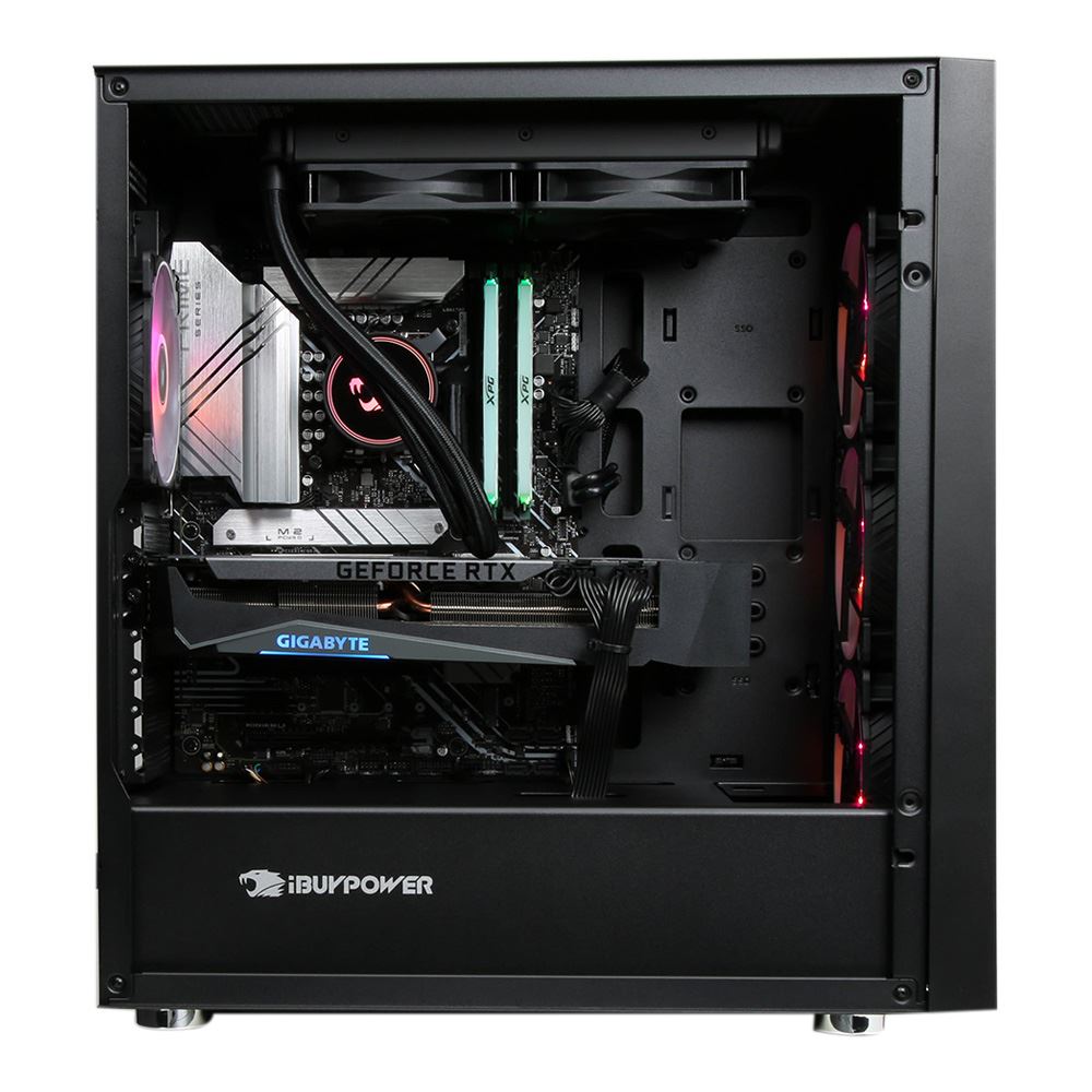 Game in style with the tempered glass side panel which allows you to see the RGB RAM sticks, rear fan, and three front fans which complement the RGB wired keyboard and mouse. Connect to a network with the onboard Gigabit Ethernet port or use the integrated Wi-Fi 5 to enjoy a high-speed wireless connection.