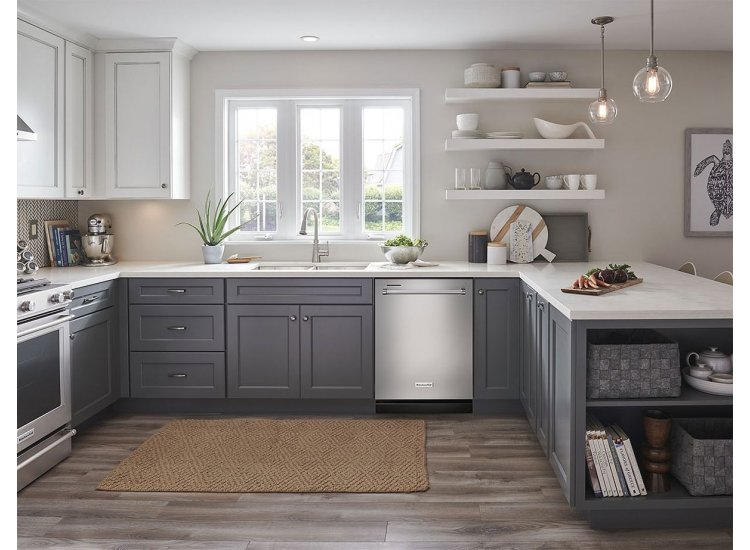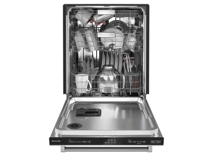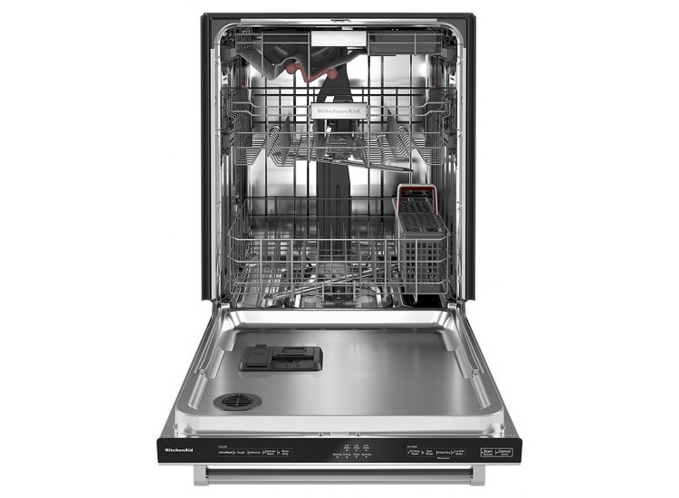 This KitchenAid PrintShield dishwasher is made for the big jobs (and the small ones) life throws at you. Whether you’re cleaning up after family meals or hosting holiday feasts on the regular, you’re going to need a powerful (and stylish) appliance that can handle every casserole pan and coffee mug. With three racks and one of the largest third racks available, this model is ready for just about anything you need cleaned. Once it’s fully loaded with glasses and mugs up top in the FreeFlex™ third rack, bowls and cookware on the second adjustable rack, and large pots and plates below on the bottom, you can rest easy—some cycles run at a quiet 44 dbA. That’s about as low-volume as a library. That means conversations can carry on over after-dinner drinks. Even little ones can head off to bed without fear. No clanging pots and pans will wake them—or interrupt conversations thanks to this KitchenAid PrintShield dishwasher.
