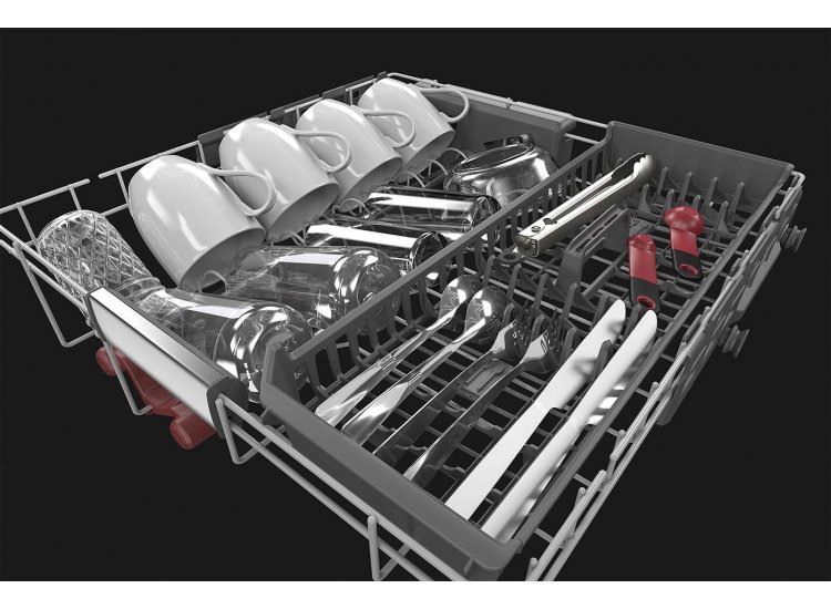 uses microfiltration to continuously remove food particles during the wash and rinse cycles and circulates clean water to dishes in all three racks. This allows dirty cookware and delicate glassware to be washed together in the same load.