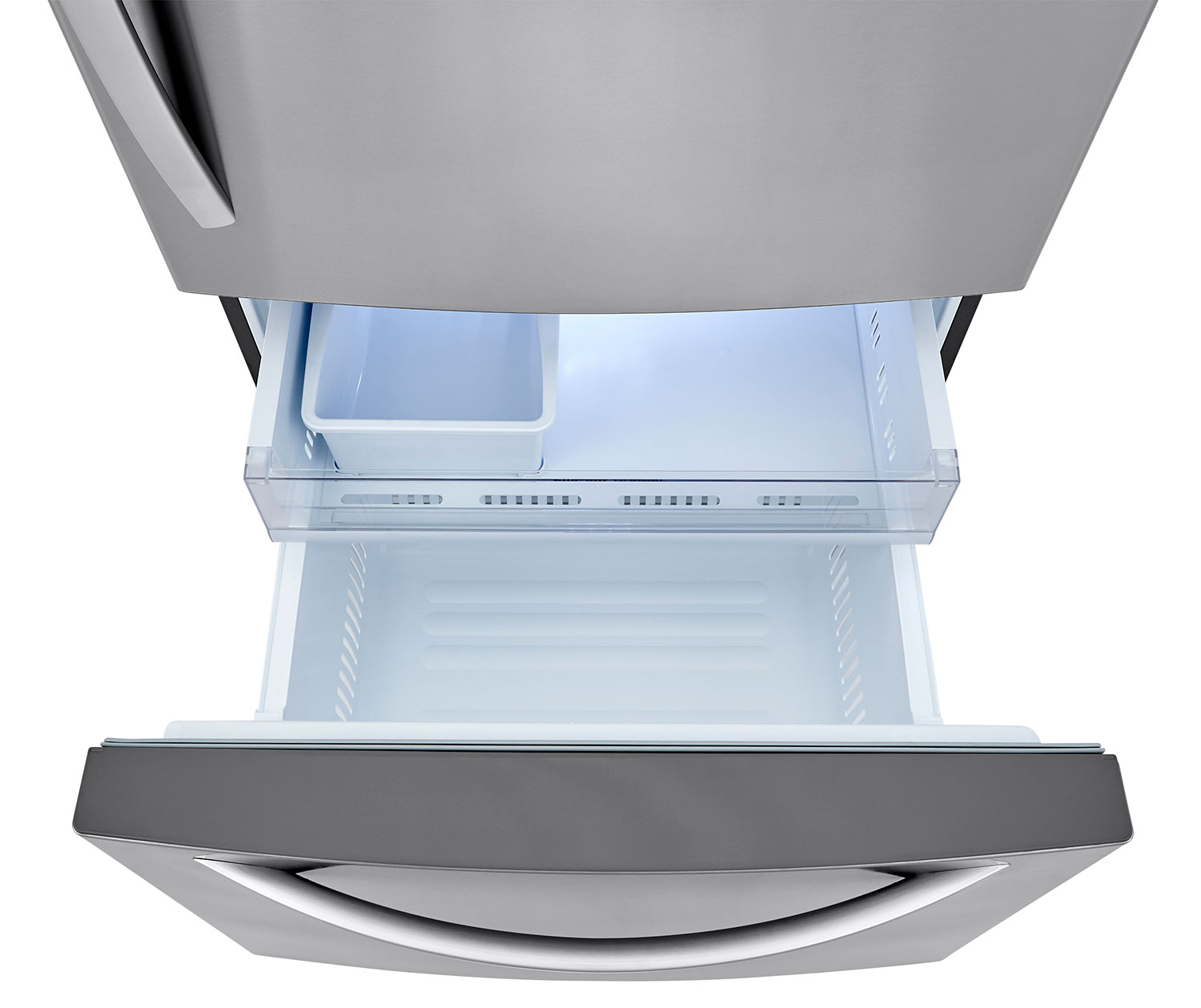 Stock-up and store everything you need. With a cavernous 26 cubic feet of space, this LG Bottom Mount refrigerator gives you ample space for all of your family’s favorite foods and keeps them conveniently organized within reach. - The Look You Love Without the Fuss