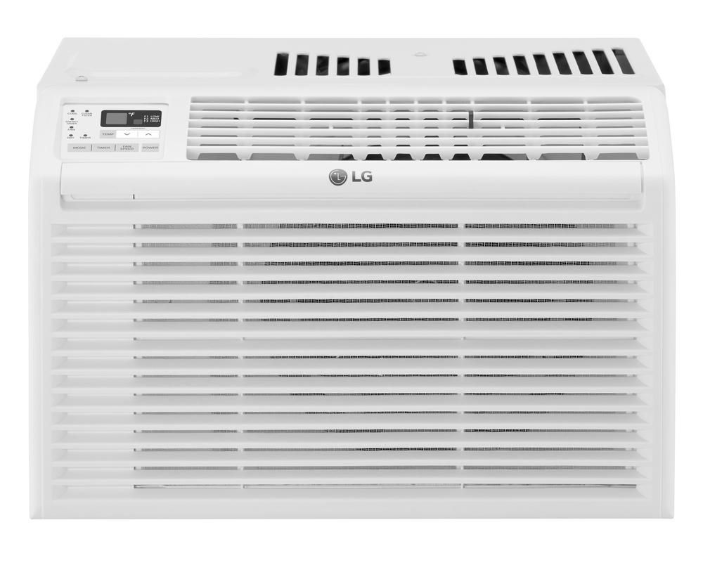 Keep your house cool in the summer with this LG 6,000 BTU window air conditioner. Place this unit in a smaller bedroom or office: with its low sound levels, it won’t disrupt your sleep or distract you from work. This LG air conditioner can operate at noise levels as low as 52 decibels in low mode. Set your preferences on this 6,000 BTU window air conditioner’s easy-to-use LED display; the screen lets you adjust the temperature and select one of three fan speeds. Alternatively, you can use this LG window air conditioner’s remote to adjust the temperature without getting up from your bed or moving from behind your desk. This unit also has a 24-hour on/off timer that lets you program it to turn off at hours when you’re out of the house.