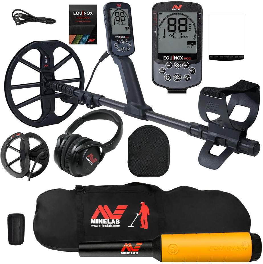 Minelab EQUINOX 900 Multi-IQ Metal Detector w/Pro-Find 20 Pinpointer and Carry Bag