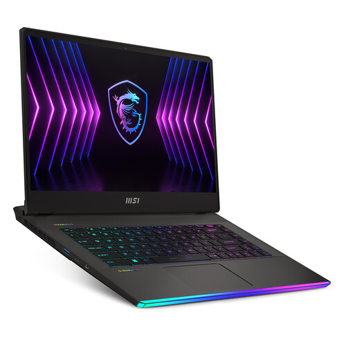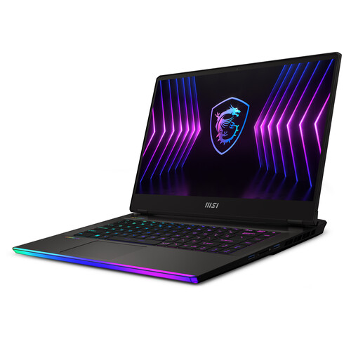 the dark gray MSI 17.3″ Raider GE77 HX Gaming Laptop. Powered by a 1.5 GHz Intel Core i7 16-core processor and 16GB of DDR5 RAM, you’ll have the performance you need to play your favorite PC games and run the apps you want. The 1TB M.2 NVMe PCIe SSD allows for faster boot and load times. The dedicated NVIDIA GeForce RTX 3080 Ti graphics card with 16GB of GDDR6 VRAM allows you to take full advantage of the 17.3″ display, which has a Full HD 1920 x 1080 resolution and 360 Hz refresh rate.