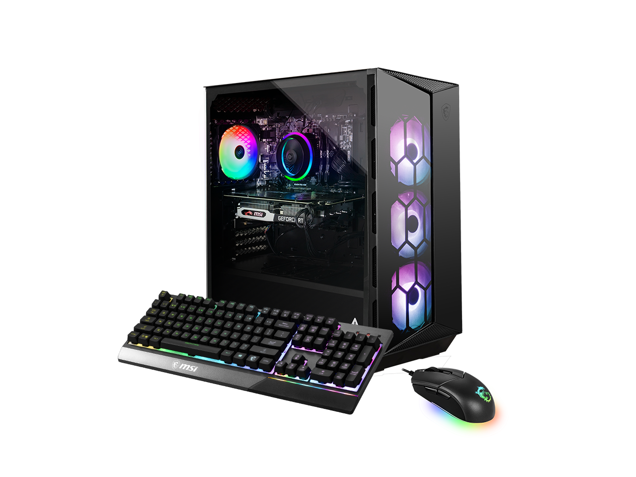 MSI AEGIS RS 11TC-405US Gaming Desktop Computer. This high-performance desktop computer system is equipped with an air-cooled 11th Gen Intel Core i5 six-core processor and 16GB of 3200 MHz DDR4 RAM to smoothly run and multitask demanding games and applications. It also includes an NVIDIA GeForce RTX 3060 graphics card, which is designed to deliver high-frame rates while providing advanced features such as real-time ray tracing, artificial intelligence, and more. With its 1TB M.2 NVMe PCIe solid-state drive, the AEGIS RS has fast boot and load times. Additionally, the Wi-Fi 5 (802.11ac) and 2.5 Gigabit Ethernet port both allow you to connect to compatible networks for smooth 4K video streaming, online games, and video chatting performance. The Aegis RS includes a wired USB keyboard and mouse, so all you need is a separate monitor to get straight to playing. Windows 11 Home is the installed operating system.