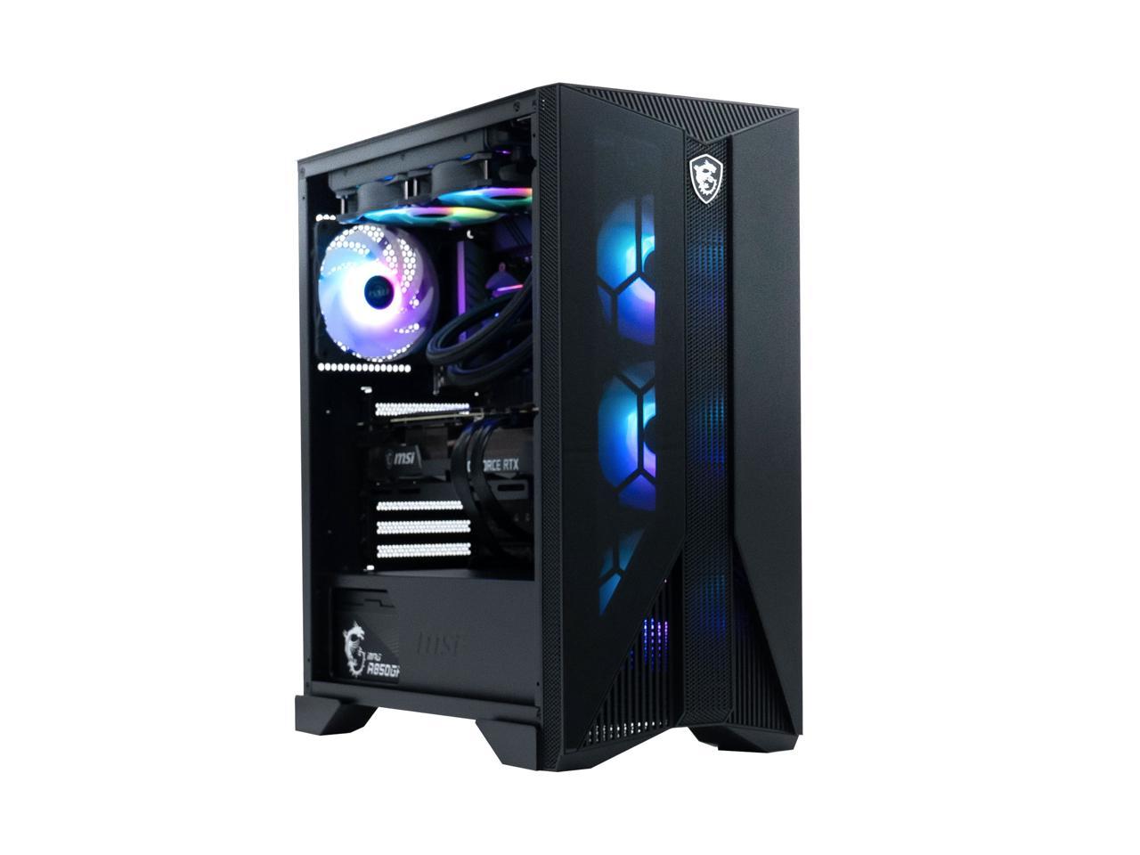 Play your favorite PC games in style with the MSI Aegis RS Gaming Desktop Computer. Powered by a 12th Gen Intel Core processor and 16GB of DDR5 RAM, the Aegis RS provides the power and performance needed to run PC games. The 1TB M.2 NVMe PCIe SSD provides fast boot times and storage space. Visuals are handled by NVIDIA GeForce RTX 30-Series graphics card, complete with real-time ray tracing and enhanced RT and Tensor Cores. Want to play online multiplayer? You can connect wirelessly via Wi-Fi 6E (802.11ax), but using the wired 2.5 GbE Ethernet RJ45 LAN jack is recommended for a stable connection.
