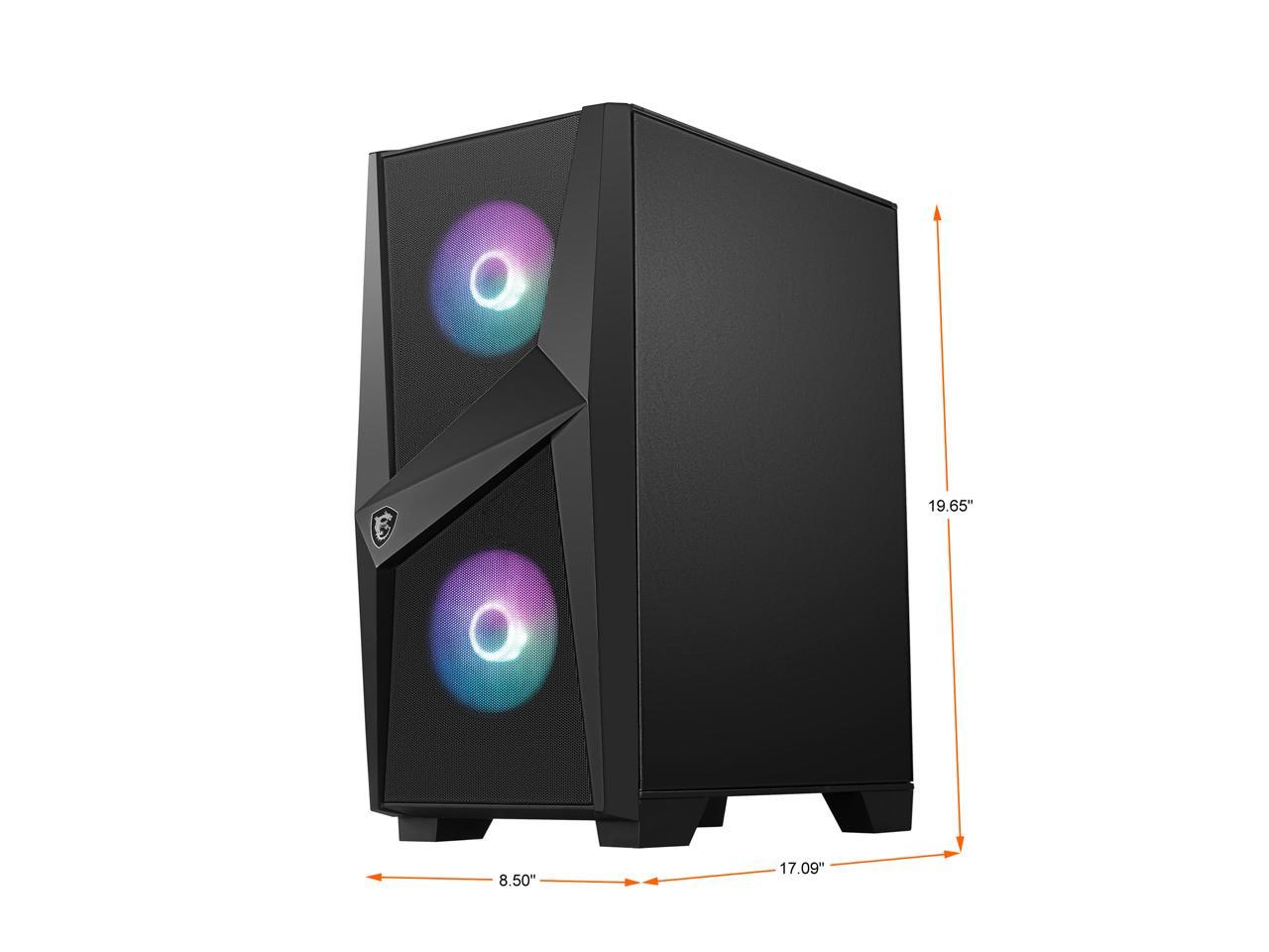 MSI Codex R Gaming Desktop Computer. With built-in RGB lighting, you can customize how your gaming setup looks. Simply press the MSI LED button to cycle through a variety of lighting options. Powered by a 12th Gen Intel Core i5-12400 processor and 16GB of DDR4 RAM, the MSI Codex R is more than capable of running your favorite games with ease. The 500GB M.2 NVMe SSD allows for fast boot and load times. The NVIDIA GeForce RTX 3060 graphics card with 12GB of GDDR6 VRAM can handle Full HD 1080p gaming with ease, providing HDMI and DisplayPort outputs.
