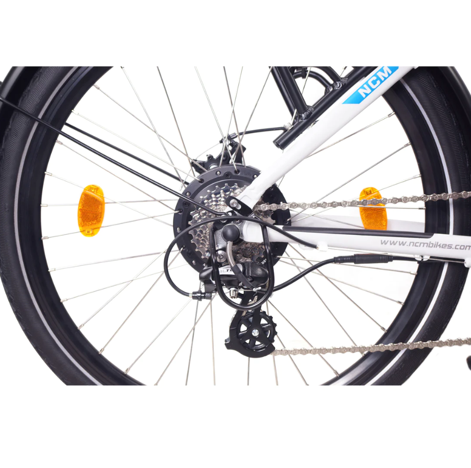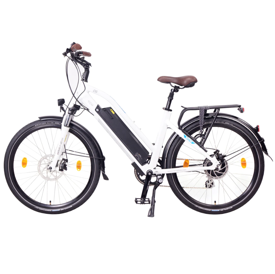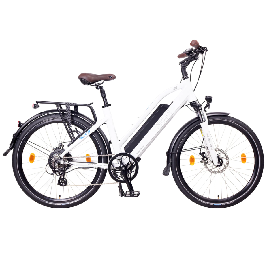The NCM Milano Plus is a true trekking hybrid E-bicycle and a perfect all-around lifestyle bike; the NCM Milano Plus is all that and more. Take it to the shops and feel comfortable with all your purchases secured on the rear rack; its design allows you to wear formal clothing and ride it to work with no discomfort and without breaking a sweat; or you can ride it across town and visit your friends. It´s casual style encourages the same from you, with no need for professional Tour de France equipment. If you want to escape the city for the weekend, this E-bike is perfectly suited for short and long trips with its now even longer-lasting battery on the NCM Milano Plus (perfect for charging all your other portable devices with its USB port), a powerful motor, and high level of comfort.
