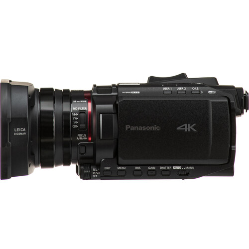The built-in Leica Dicomar lens features a 24x zoom with its widest angle at 25mm, and it uses the digital iZoom feature to zoom up to 48x. The Face Detection AF feature allows you to track faces and automatically adjusts focus on your subject. It also features manual control rings, a control dial, and a 5-axis optical image stabilization to keep your shots steady. The 3.5″ fold-out LCD features a high-resolution touchscreen. The camera records in .mp4, .mov, and AVCHD codecs and features HEVC compression. The camera incorporates two SD card slots, allowing you to use relay and simultaneous recording. The camera also supports live streaming over 2.4 GHz Wi-Fi via RTP/RTSP/RTMP/RTMPS streams.