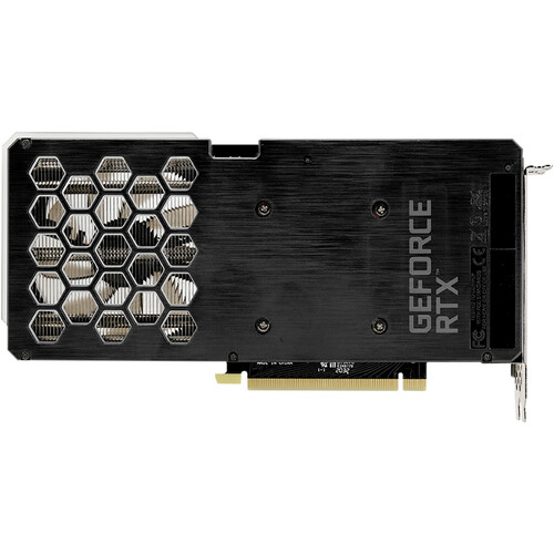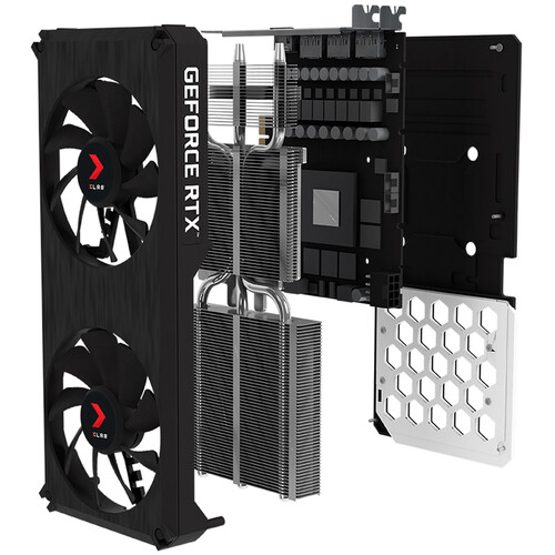The front panel of the card features a variety of outputs, such as DisplayPort 1.4a and HDMI 2.1. HDMI 2.1 supports up to 48 Gb/s bandwidth and a range of higher resolutions and refresh rates, including 8K at 60fps, 4K at 120fps, and even up to 10K. The RTX 3060 is not just about high-resolution gaming. Computationally intensive programs can utilize the GPU’s 4864 cores to accelerate tasks using CUDA and other APIs. For cooling, PNY implemented a dual fan cooler. This card also supports RGB lighting.