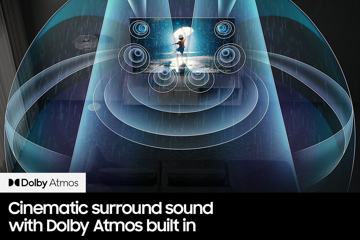Enjoy dynamic contrast and vivid colors that jump off the screen. Quantum HDR 24x delivers an awe-inspiring spectrum of hues to make your Hollywood movies in HDR come alive. - Dolby Atmos®
