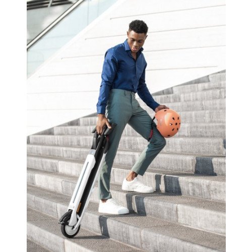 The Ninebot KickScooter Air T15 powered by Segway is the most compact, lightweight, and energy-efficient electric KickScooter ever introduced to navigate in a city environment. The one of a kind sleek and futuristic appearance of the Air T15 makes it unique from other KickScooters in the market. It can speed up to a maximum of 20km/h (12.4mph) and it can be quickly folded in half like paper. Once folded, the KickScooter is only 8.7 inches in height and the handlebars will self-retract, leaving the rider with a hassle-free user experience. The rider can easily switch between riding modes simply by stepping on the multifunctional fender brake twice.
