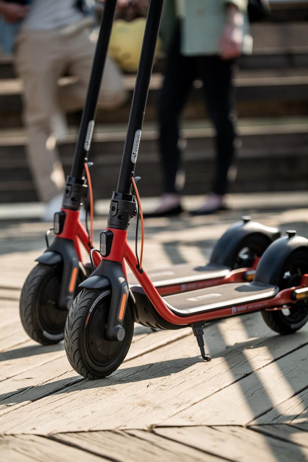 Ninebot’s D18E looks great too. Its double tube frame has a triangular shape, making it strong and stable. The 10” air tyres are comfortable and smooth, as well as steady and durable. Coming with a built in kickstand, and a 2-step folding mechanism, it’s easy to store your scooter whenever you need to.