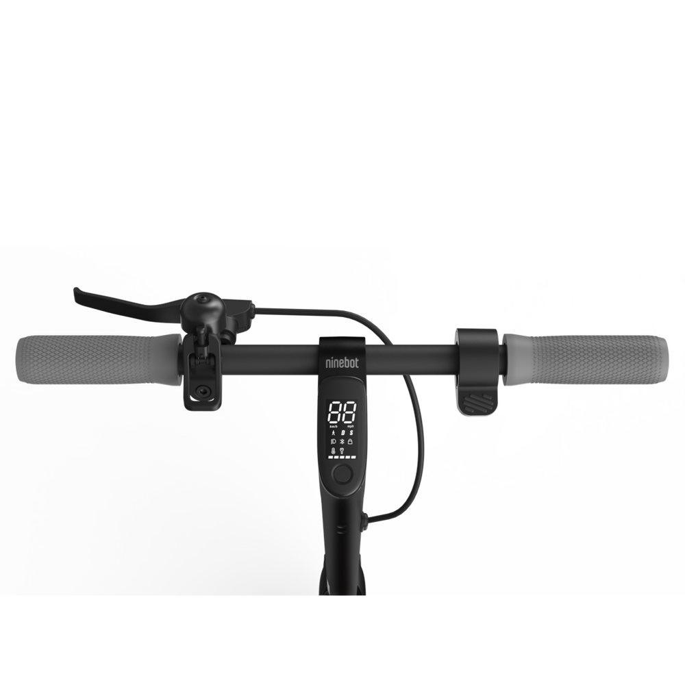 Take control of your ride easily with the full-colour LED dashboard display. Connect to Bluetooth, change speed settings, and activate headlights at the touch of a button. You’ll also see error messages, battery levels and a temperature warning at a glance. Simply download the Segway-Ninebot app to access all the functions on this scooter.