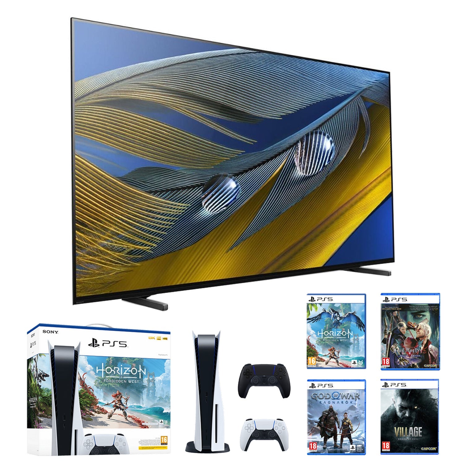 Sony XR55A80JU 55 inch 4K OLED Television & Sony PlayStation 5 Disc Edition – Horizon Pack with 4 Games Extra Controller and Charging Dok.