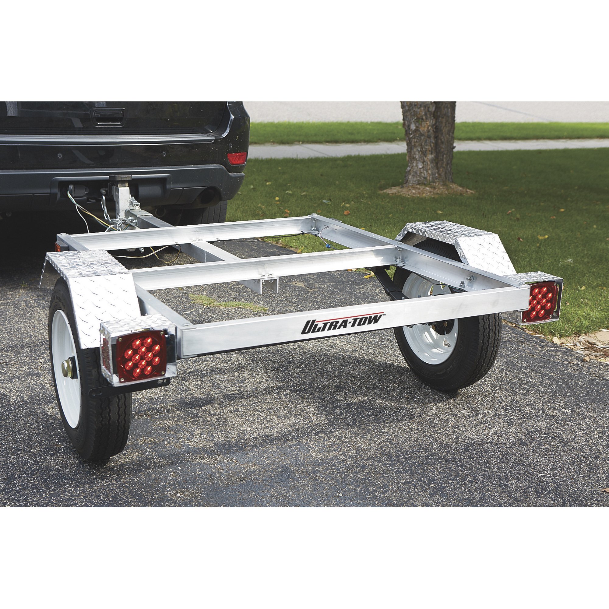 The Ultra-Tow® 40in. x 48in. Aluminum Utility Trailer Kit is a complete road-ready trailer kit with fenders and features a rustproof aluminum frame. Large 40in. x 48in. bed has a 1,060-lb. payload capacity and is ideal for hauling mulch, dirt, machinery or other cargo. 1,200-lb. max. GVWR. Aluminum wheel fenders prevents cargo damage from rocks and debris. Meets all DOT requirements.