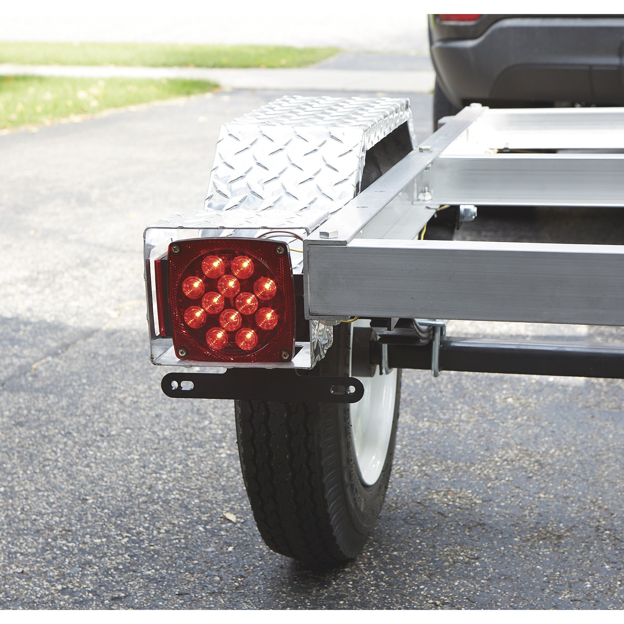 • Includes two 4.80-12in. tires, slipper springs, LED lighting, tail and turn signals, side running lights, wiring and connector, and 1 7/8in. coupler with safety chain