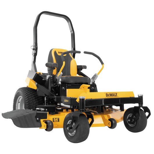 Built to tackle 4-10 acres with ease, the heavy-duty DEWALT 54 in. commercial zero-turn mower is the ideal choice for big jobs. Delivering a consistent, high-quality cut even in challenging conditions over large areas of land, this workhorse mower was designed with the professional in mind. Mow more in less time with the 24 HP Kawasaki engine that offers high power performance while our most powerful transmission delivers up to 500 ft-lbs. of output torque. A durably rigid 1.5 in. x 3 in. tubular steel frame provides maximum strength and convenience with quick access points for routine maintenance. Made for high cut accuracy, the state-of-the-art wheel and caster design optimizes trim capabilities and maintains a smooth ride at higher speeds. Get the job done fast with an extra-wide 54 in. cutting deck and stay comfortable as you work with top tier ergonomic features like a an adjustable padded high-back seat, a dial-in moveable lap bar, and a wide foot pan.